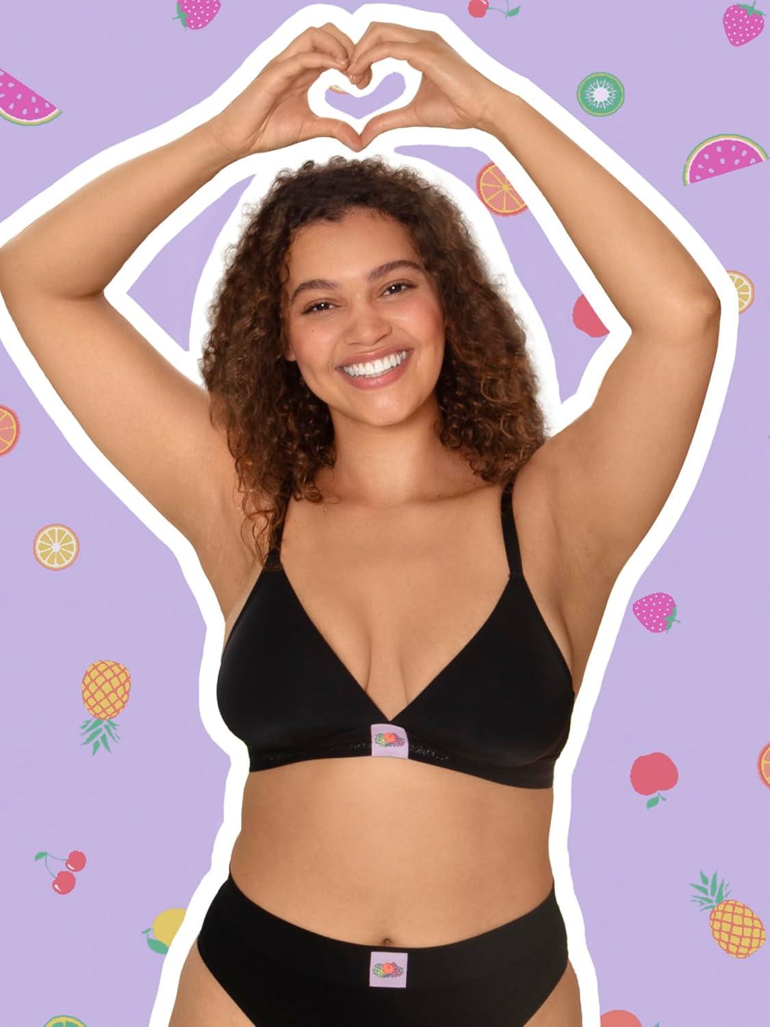 Fruit of the Loom A Fresh Collection FOMO Free 2-Pack Women's Triangle Bralettes – Modern Comfort & Sleek Design(Stellar Orchid/Black Hue)