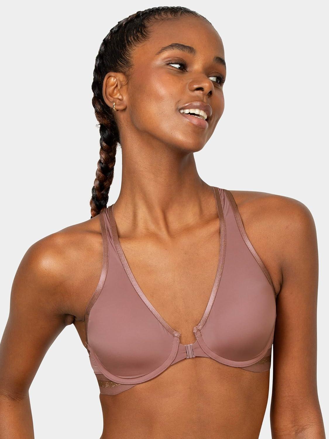 Fruit of the Loom A Fresh Collection Game Changer 2-Pack Front & Back Closure Racerback Bras and Comfort for Women(Premium Plum/Black Hue)