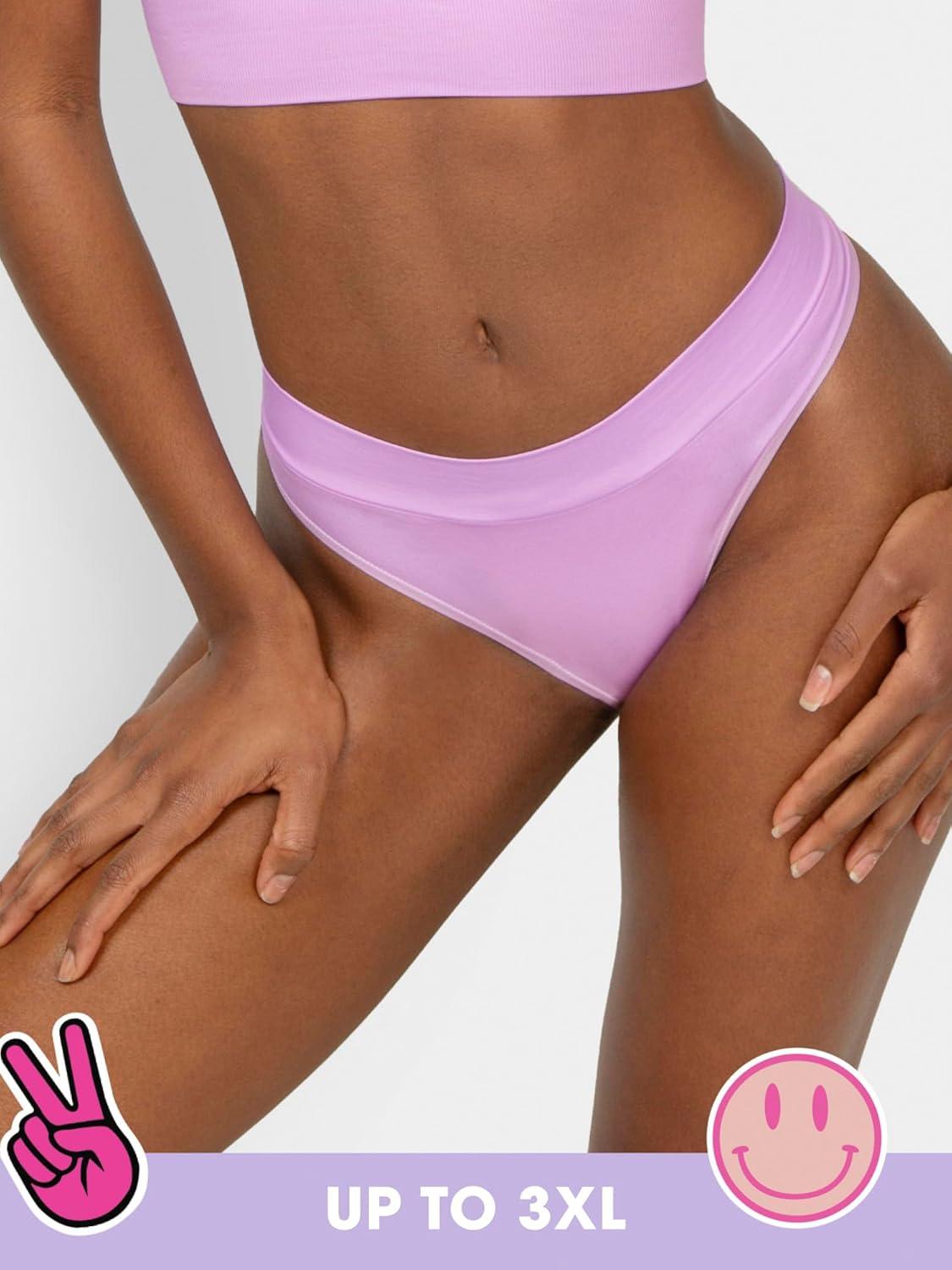 Fruit of the Loom A Fresh Collection Sneak Chic 3-Pack Women's Seamless Thong - For Ultimate Comfort & Invisible Style(Sugar Plum/Grey/Stellar Orchid)
