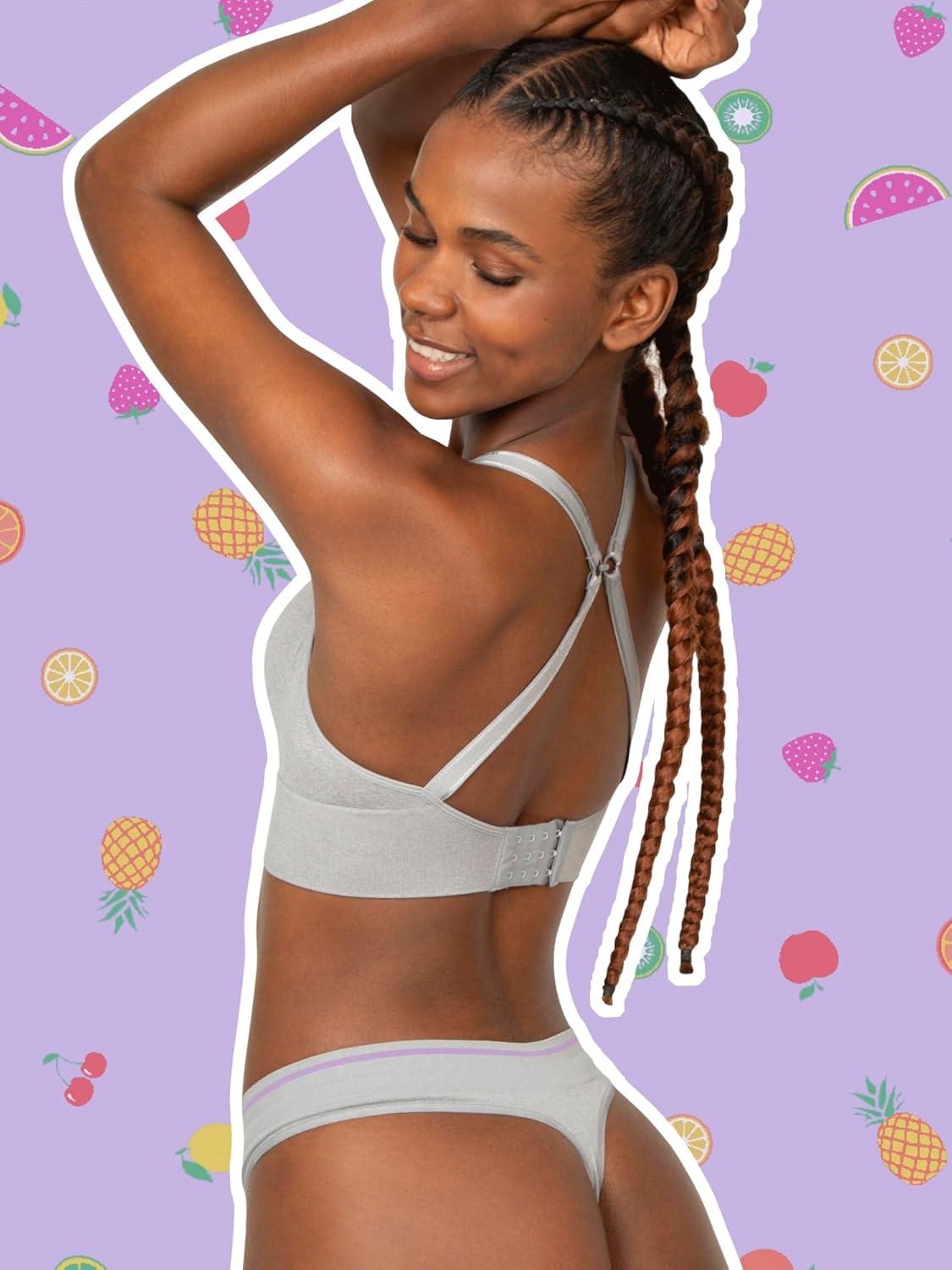Unleash your inner style ninja with our Sneak Chic Thong from A Fresh Collection by Fruit of the Loom – designed exclusively for your vibrant growing juniors! Crafted from recycled material, this thong is a fashion secret weapon, laying flat under clothes for a seamless look. The wide waistband ensures smoothing support, embracing her growing curves with flair. With a low mid-rise design and thong coverage, it's all about keeping it chic and comfy. Say goodbye to visible panty lines and hello to a triple dose of style – it's a three pack! Available in sizes XS to 3XL, because we believe in making everybody feel fabulous. Step into the world of Sneak Chic, where fun meets fashion effortlessly!