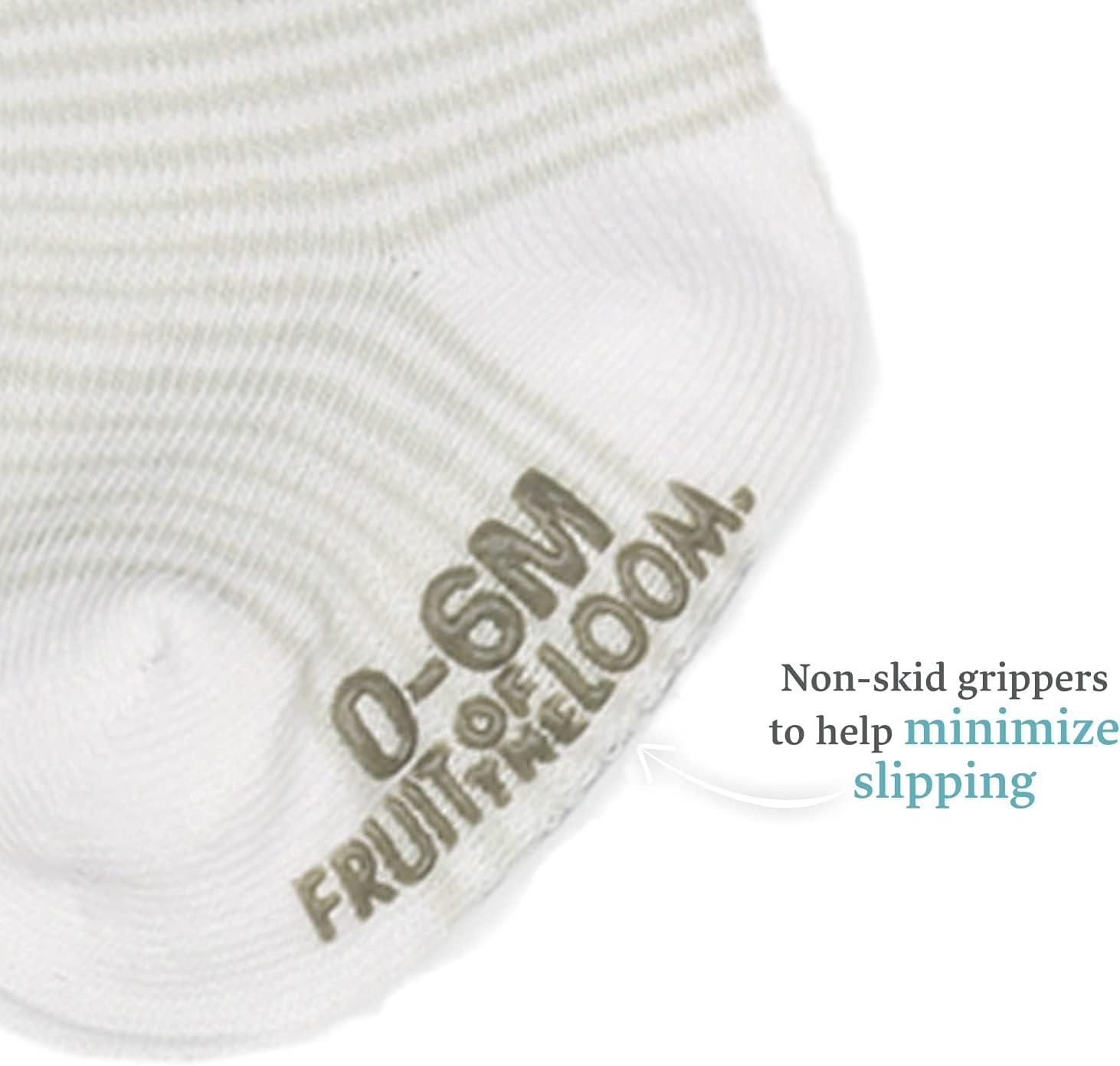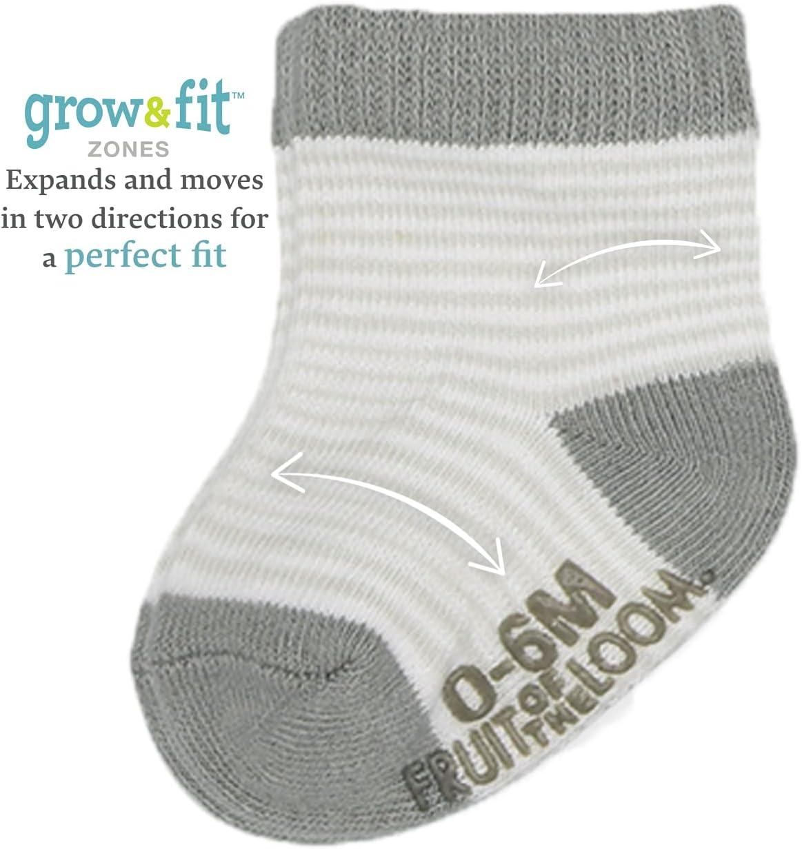 Fruit of the Loom Baby 14-Pack Grow & Fit Flex Zones Cotton Stretch Socks - Unisex, Girls, Boys(Grey Stripe)