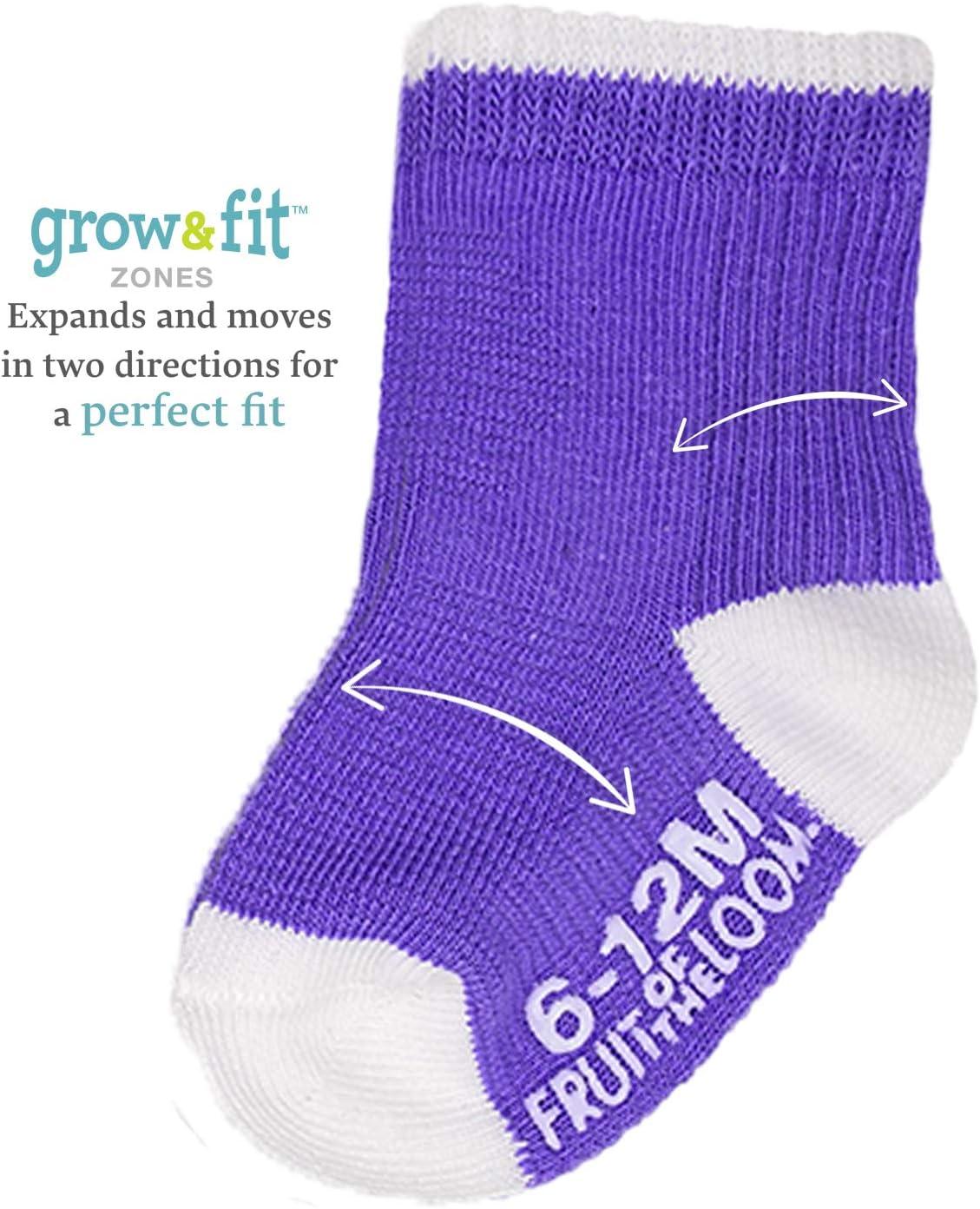 Fruit of the Loom Baby 14-Pack Grow & Fit Flex Zones Cotton Stretch Socks – Unisex, Girls, Boys(Grey X)
