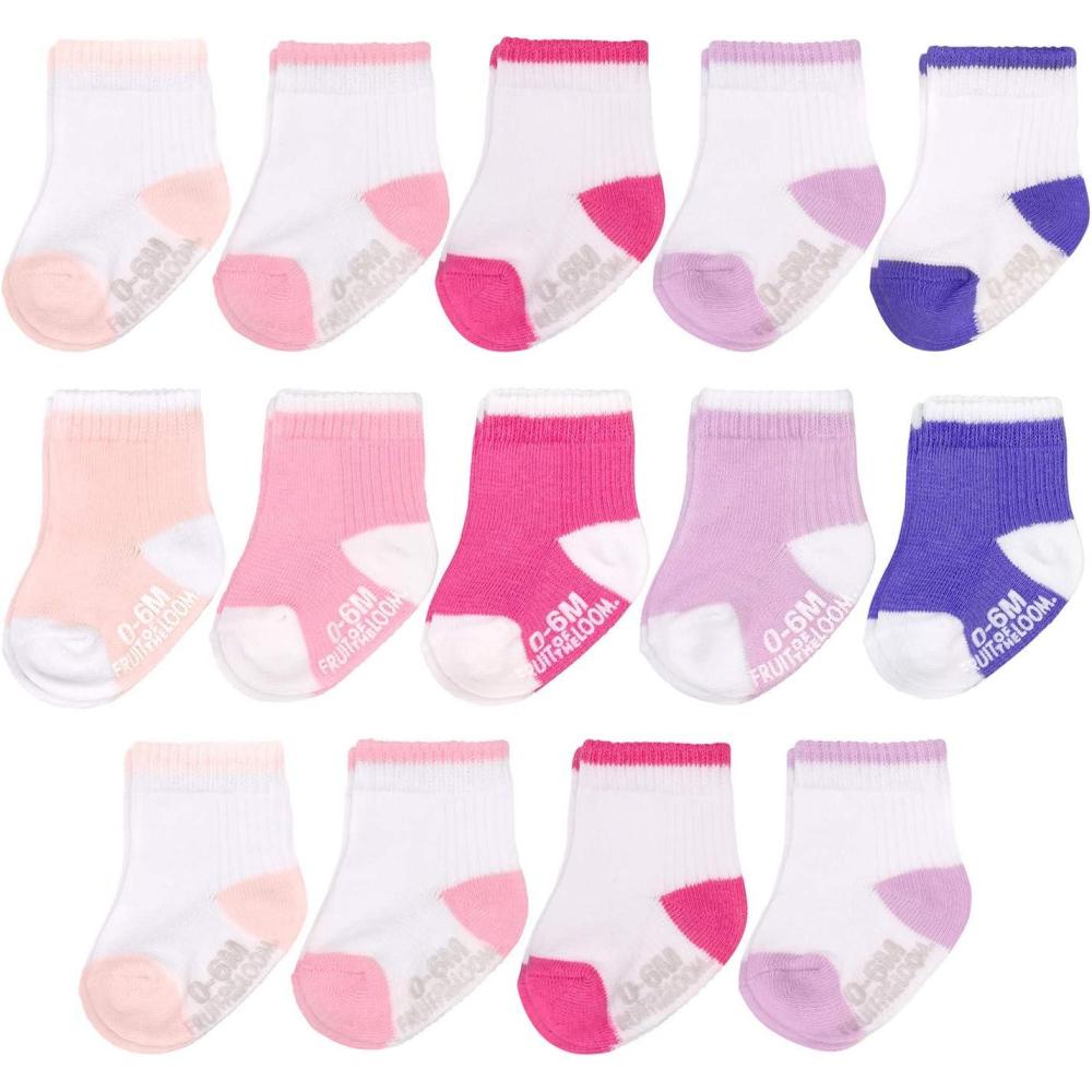 Fruit of the Loom Baby 14-Pack Grow & Fit Flex Zones Cotton Stretch Socks - Unisex, Girls, Boys(Pink Pop)