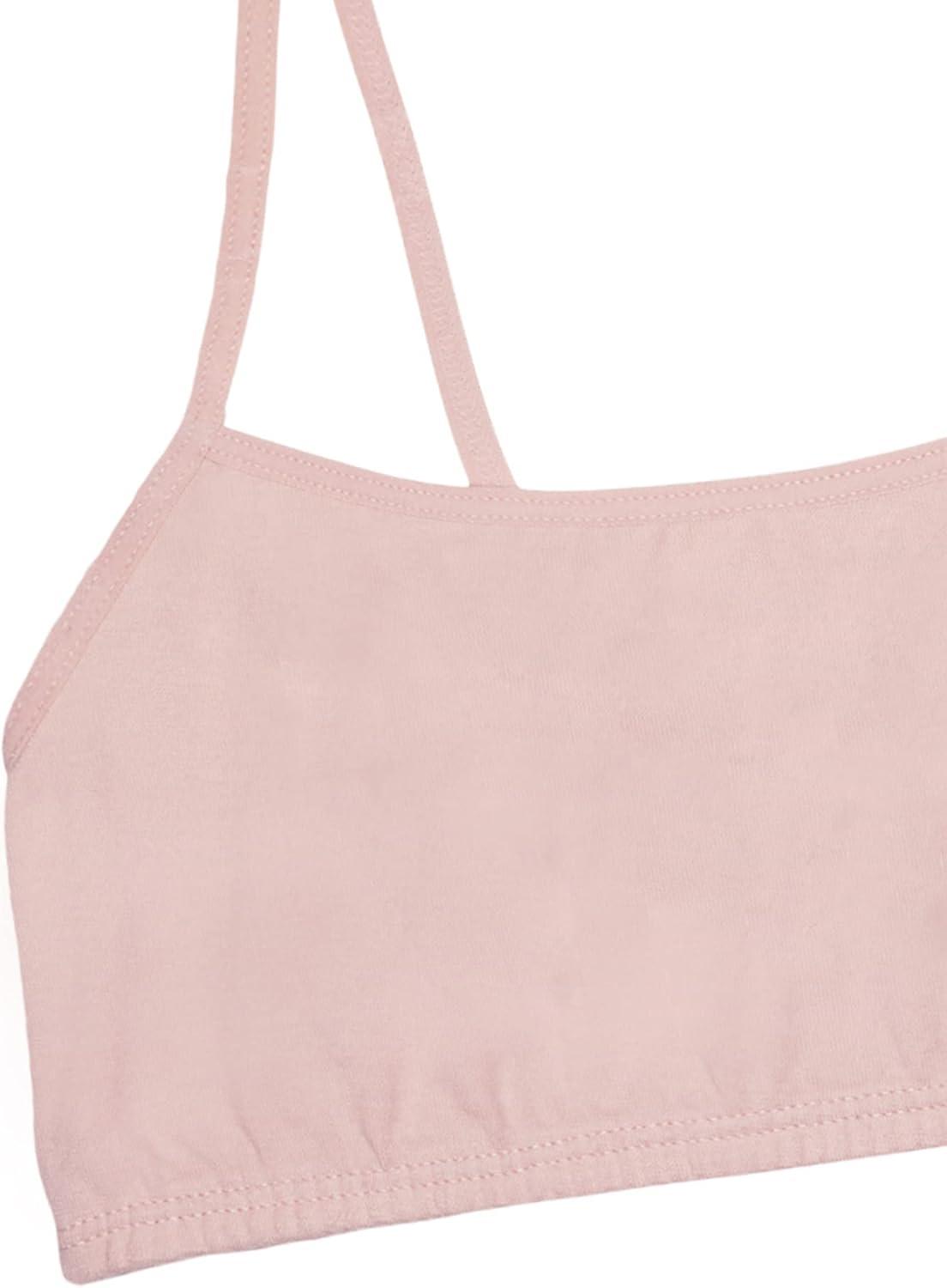 Soon to be your girl’s favorite first bra. Wherever she goes, these girls cotton bras will be there every step of the way. The Fruit of the Loom Girl’s Cotton Training Bras include four beginner bras in a variety of cute colors and prints, making it fun for her to get dressed in the morning. These training bras are made of soft, breathable cotton fabric for comfortable and lightweight support. The cami bras have an easy pullover style that won’t slow her down. These girls training bras have spaghetti straps and an elastic bottom band to keep her in place throughout the day.