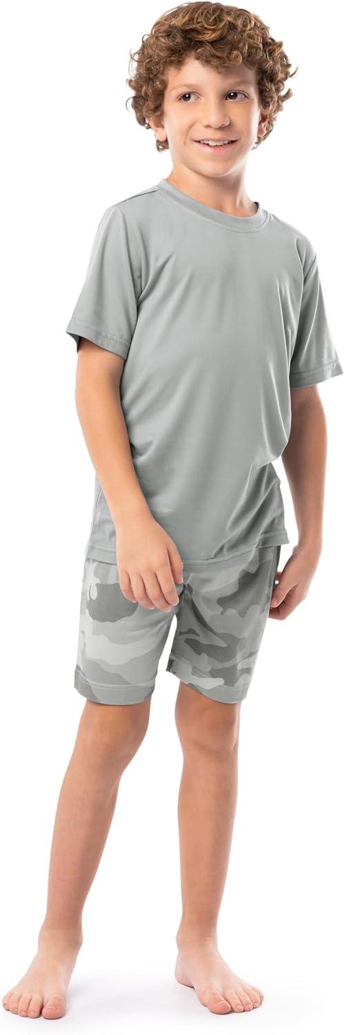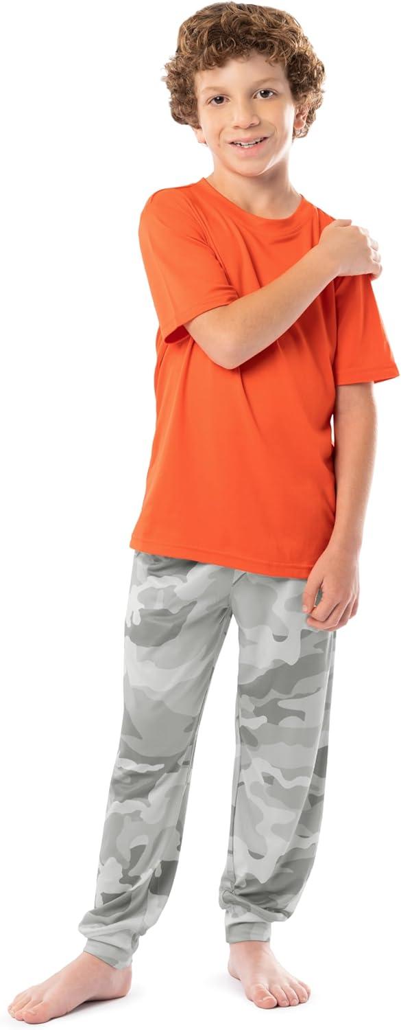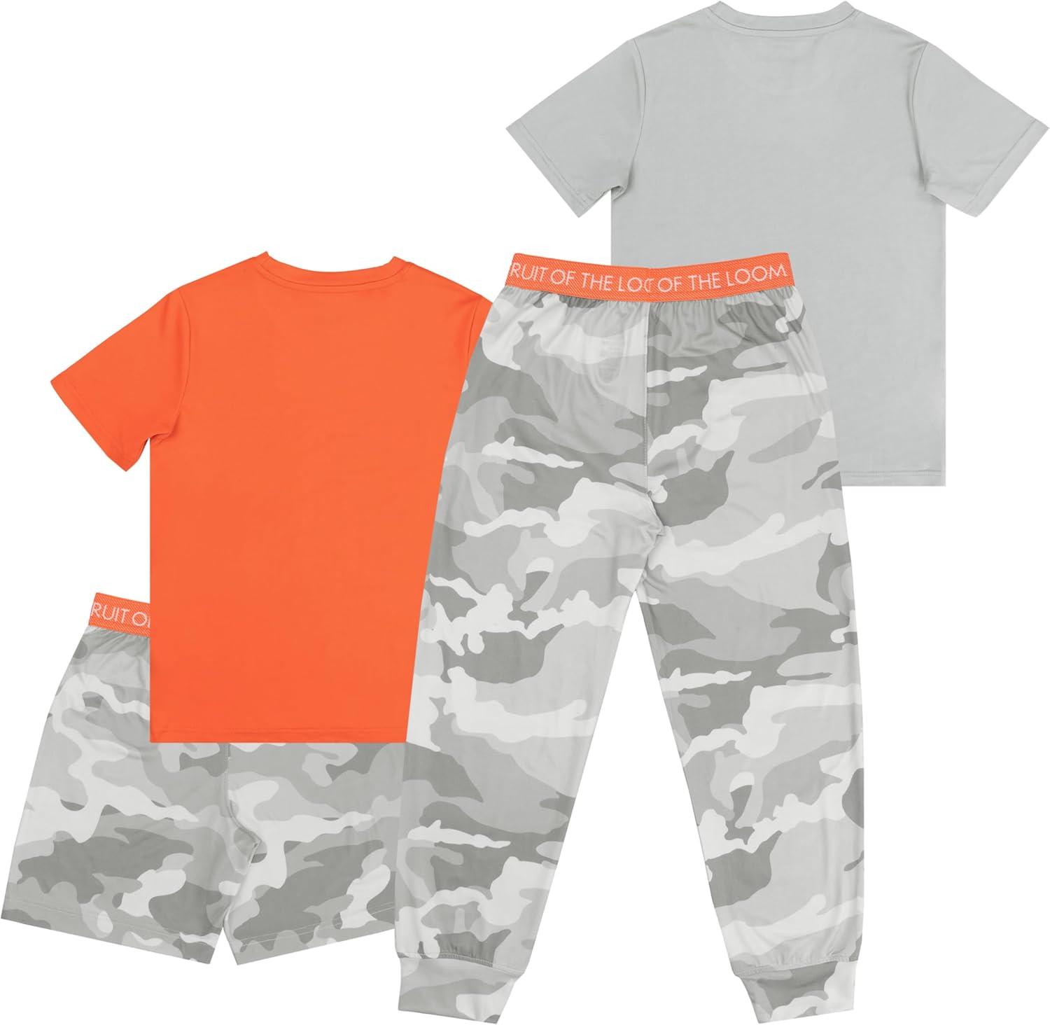 Fruit of the Loom Boys’ Getaway Loose Fit 4-Piece Pajama Set(Orangecamo)