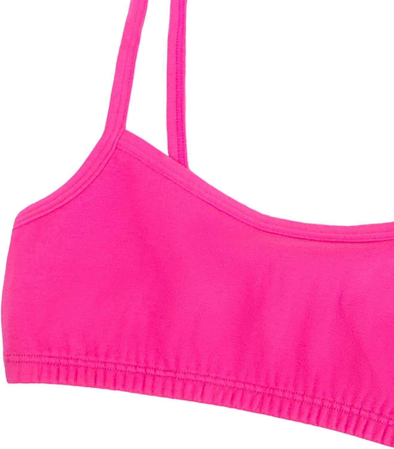 Fruit of the Loom Girls Cotton Spaghetti Strap Sport Bra(Blushing/Grey Heather/Black/Nude)
