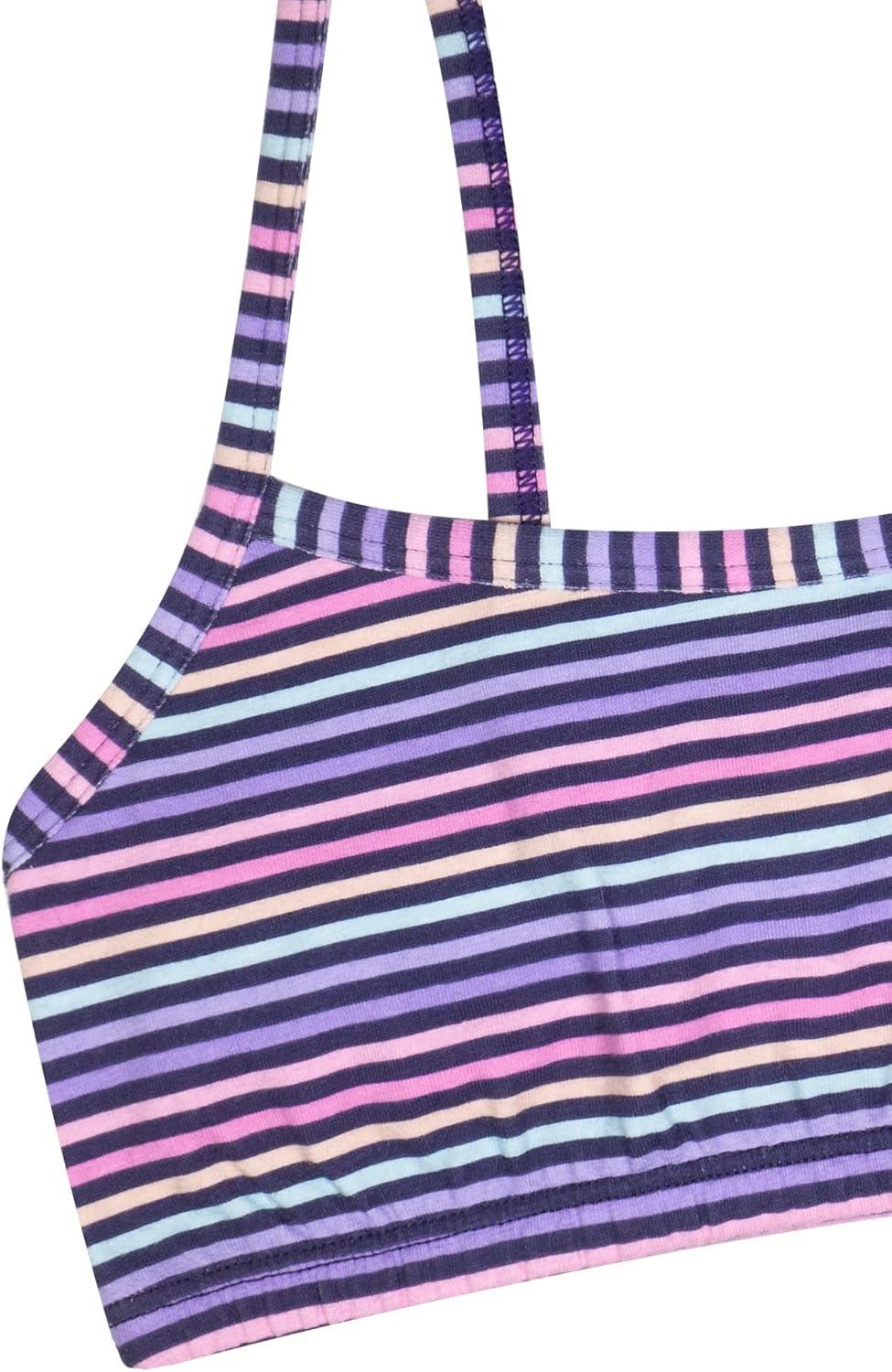 Fruit of the Loom Girls Cotton Spaghetti Strap Sport Bra(Happy Stripe/White/Eyeshadow)