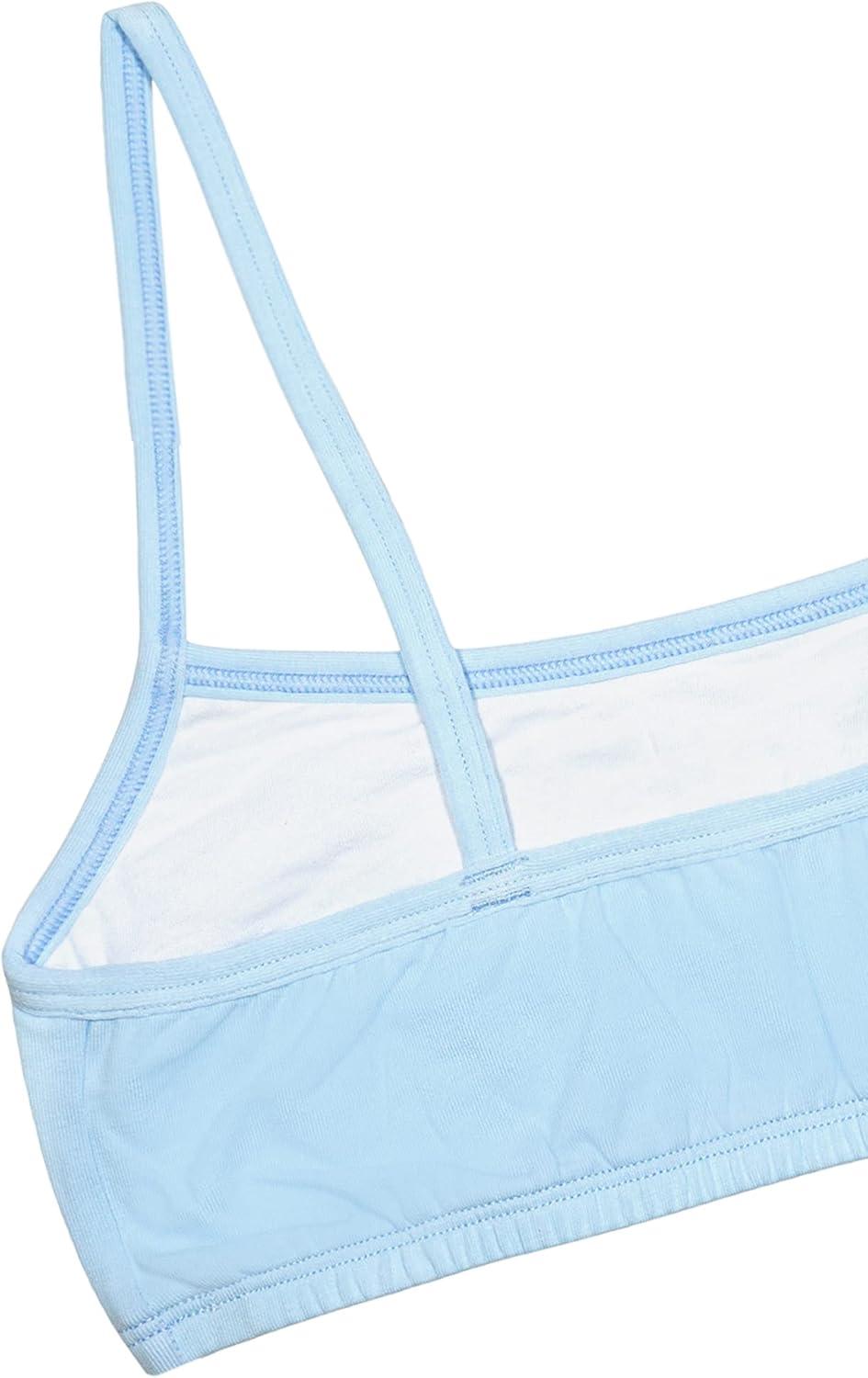 Fruit of the Loom Girls Cotton Spaghetti Strap Sport Bra(Soft Blue Heather/Denim Heather/White)