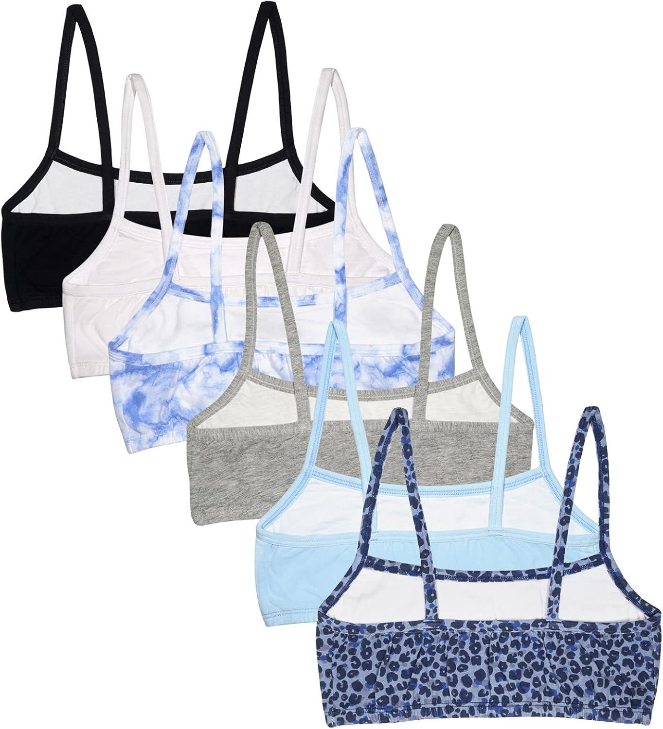 Fruit of the Loom Girls Cotton Spaghetti Strap Sport Bra(Leo/Eyeshadow/Grey/White/Marble/Black)