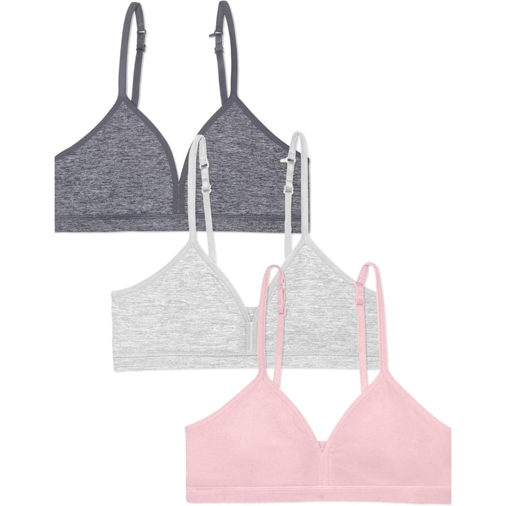 Fruit of the Loom Girls' Soft and Smooth Training Bra(Blush Rose/Grey Heather/Charcoal Heather)
