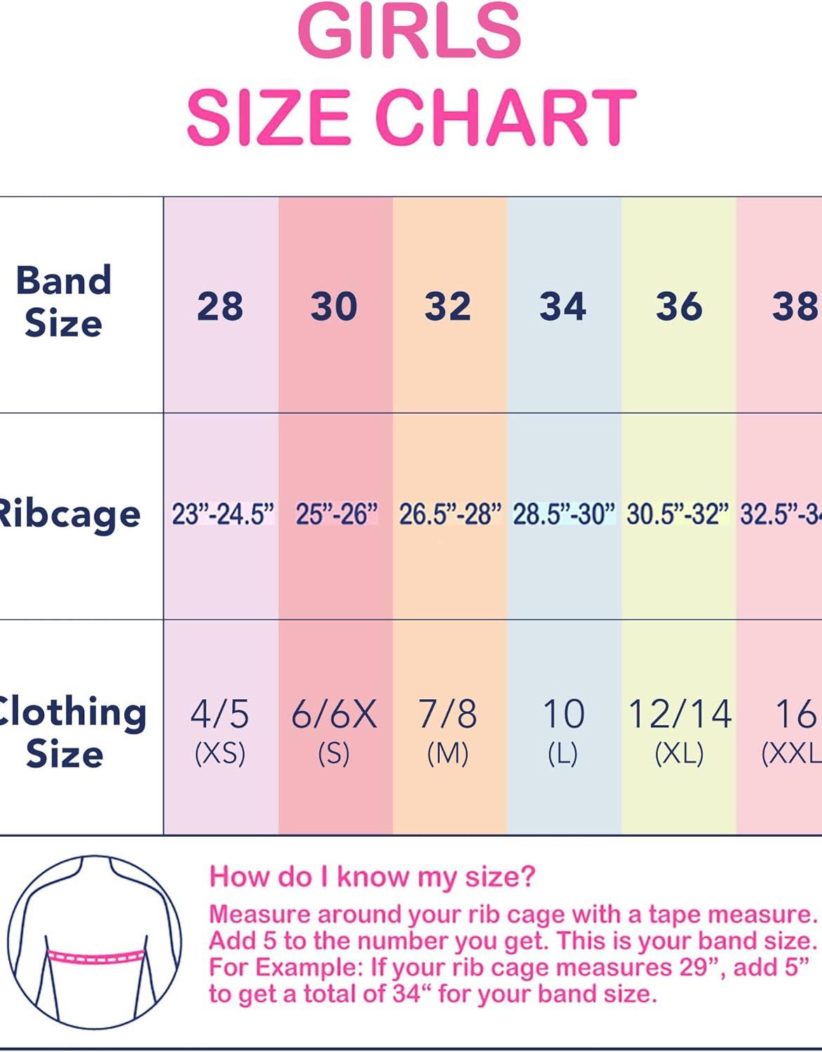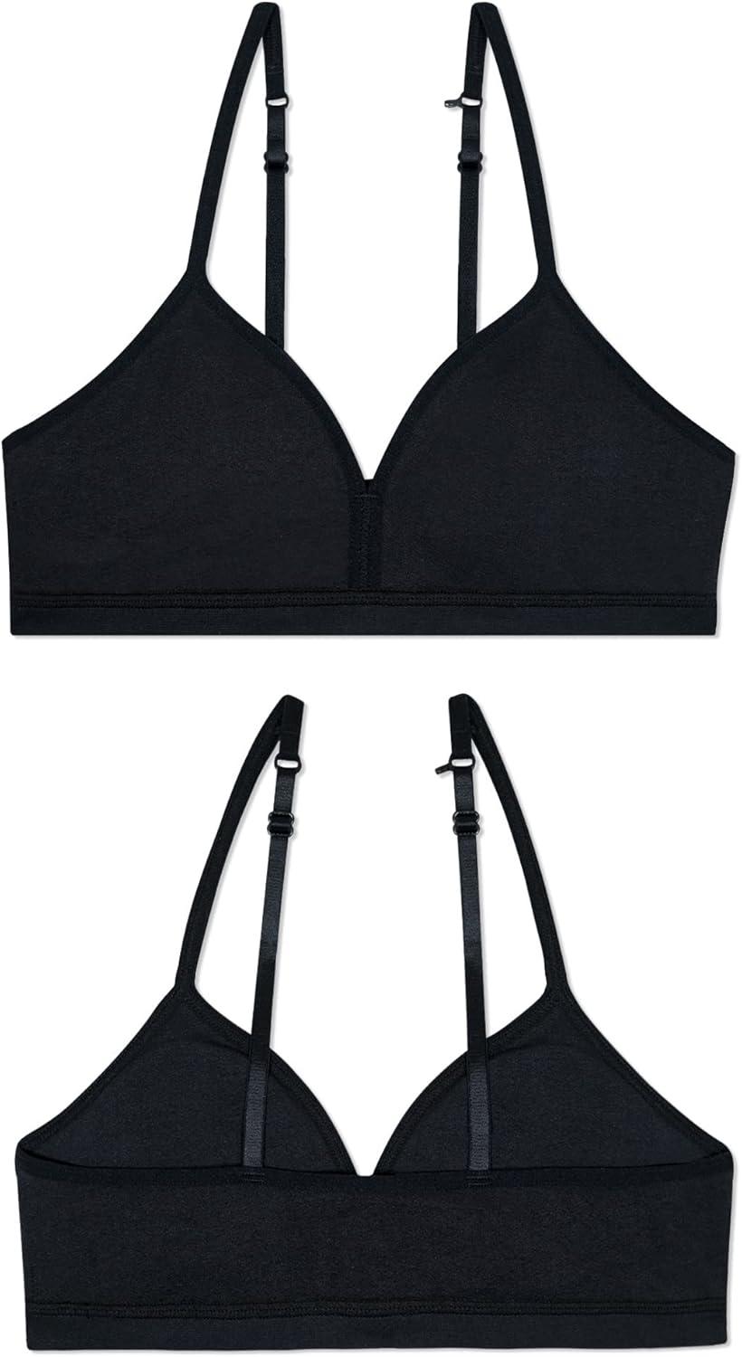 Is your growing girl ready for her first big girl bra? The Fruit of the Loom Girl’s Soft and Smooth Training Bra Pack will be her go-to. With all the comfort of a sports bra but the trendy silhouette of a big girl bra, these are the comfiest and cutest bralettes around. Soft, smooth and stretchy fabric provides all day comfort and lays flat under her clothes. Removable pads provide modesty. Adjustable straps are perfect for growing girls, plus they convert to racerback so they’ll stay hidden under all of her favorite outfits. Your little fashionista will love the trendy silhouette and v-neck design, and you'll love how confident and happy she is in this bralette.