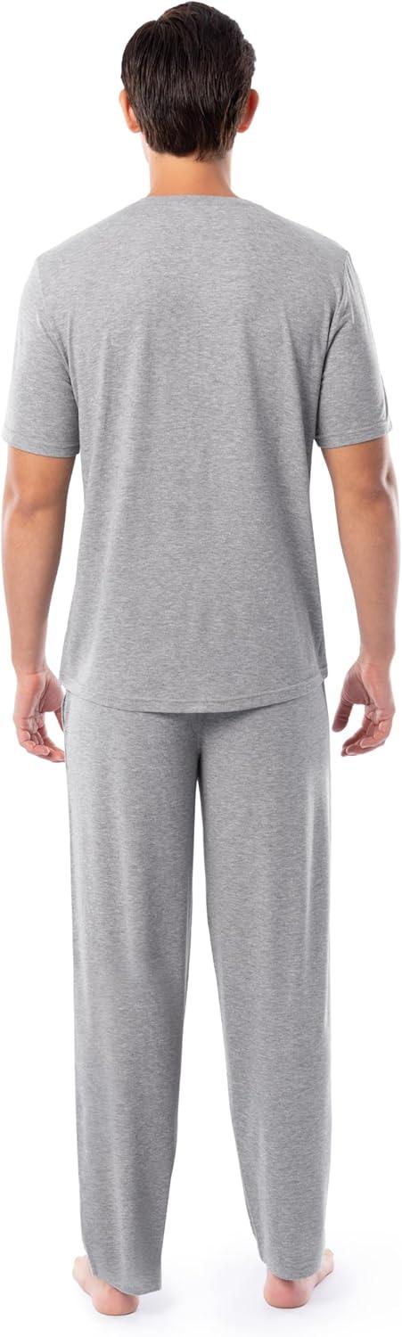 Fruit of the Loom Men's 360 Stretch Short Sleeve V-Neck Top and Pant Sleep Pajama Set(Grey Heather)