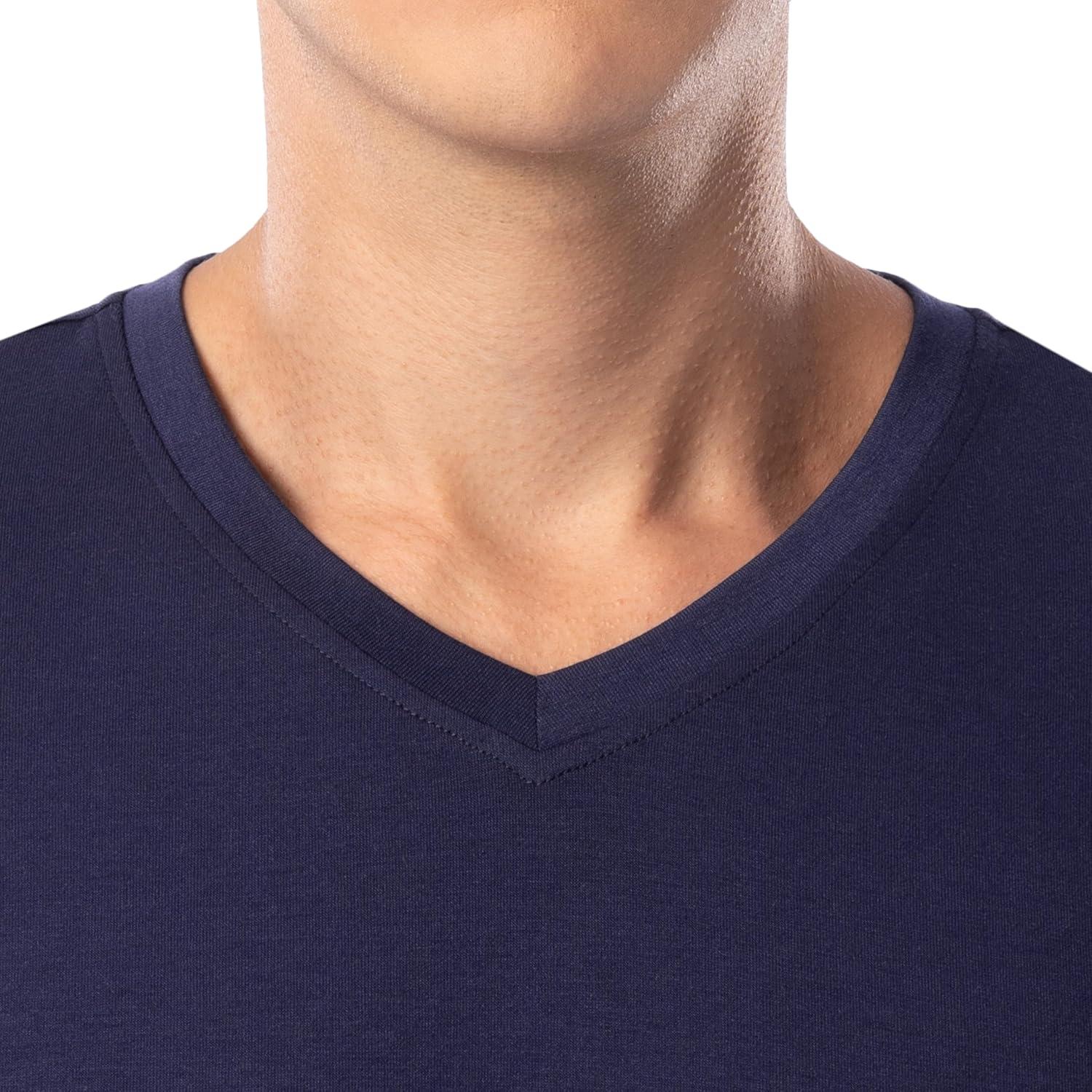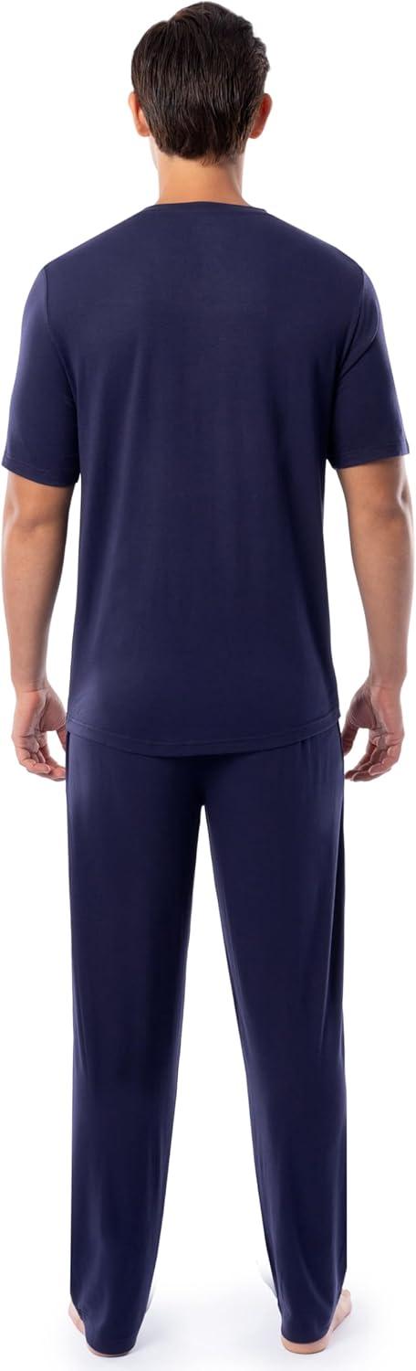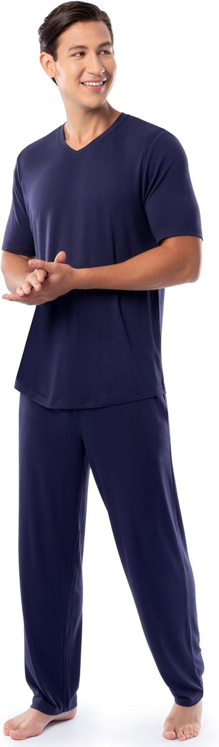 Indulge in relaxation with Fruit of the Loom Men's 360 Stretch Short Sleeve V-Neck Top and Pant Sleep Set. This pajama set combines modernity and timeless comfort. With a relaxed fit, V-neck top, open-bottom pants, and thoughtful details like an adjustable drawstring waistband and side seam pockets, it invites effortless style to your downtime.