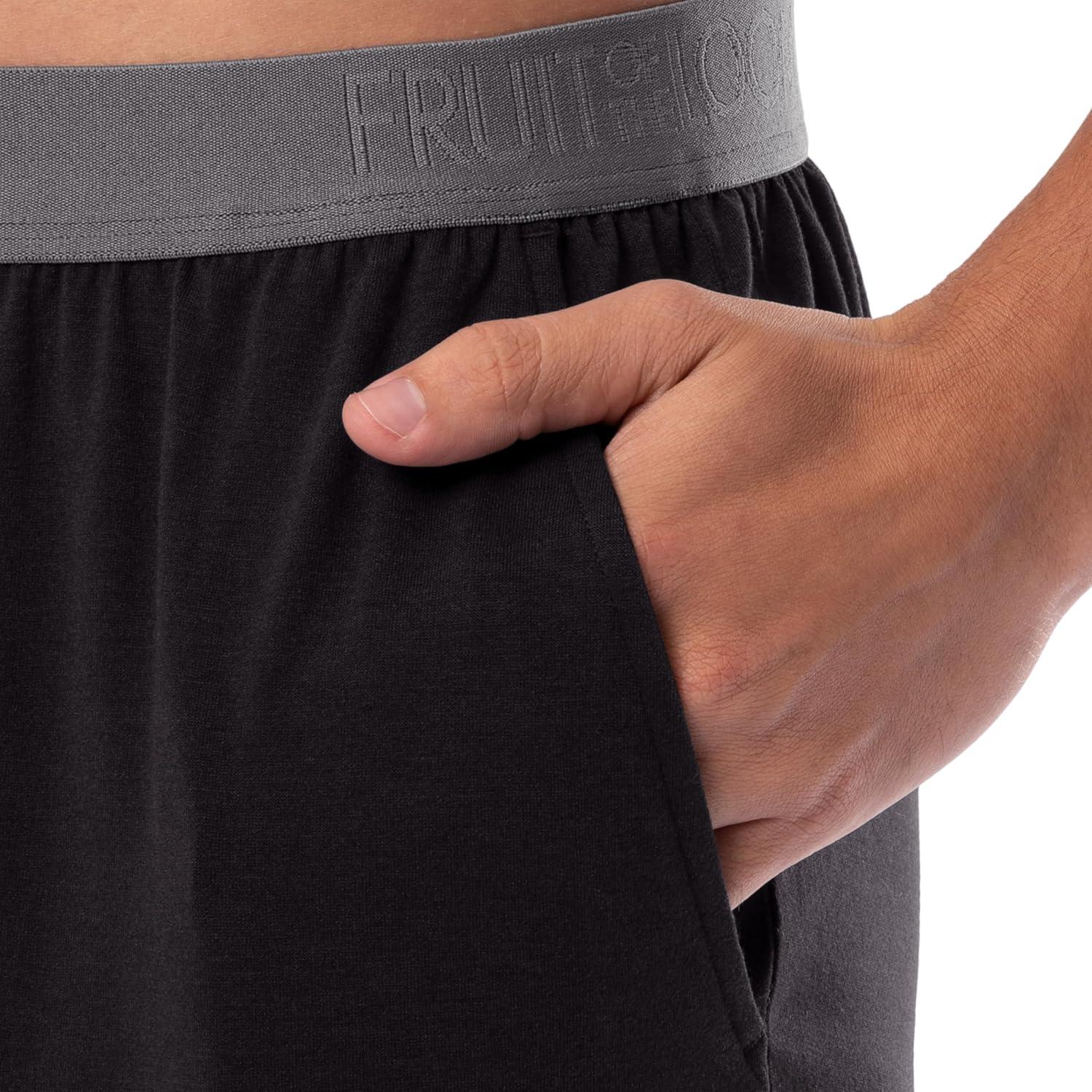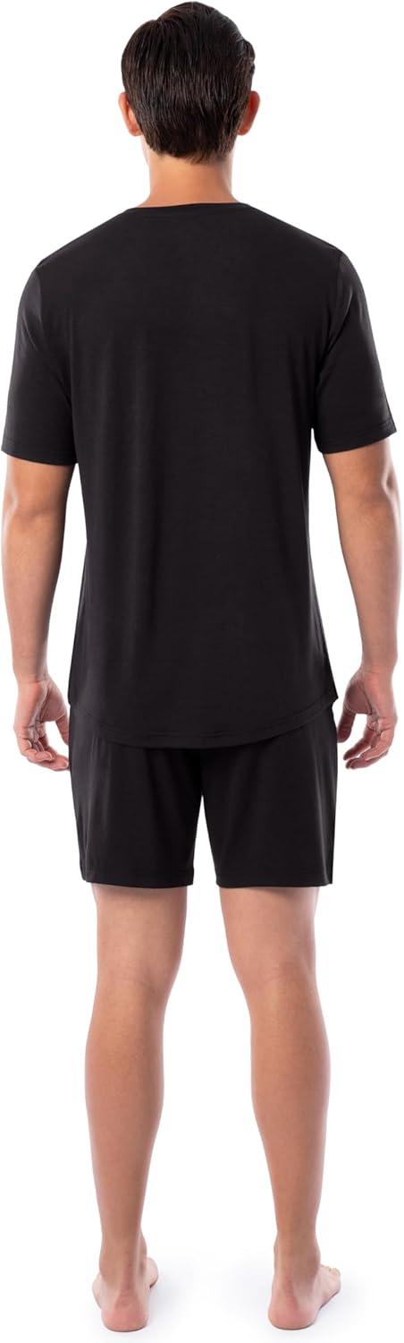 Discover ultimate comfort with Fruit of the Loom Men's 360 Stretch Short Sleeve V-Neck Top and Shorts Sleep Set. Crafted for timeless ease, this men’s comfy sleep shorts set offers a relaxed fit for effortless movement. Featuring a logo-embellished jacquard elastic waistband, adjustable drawstring, button-fly, and practical side seam pockets.
