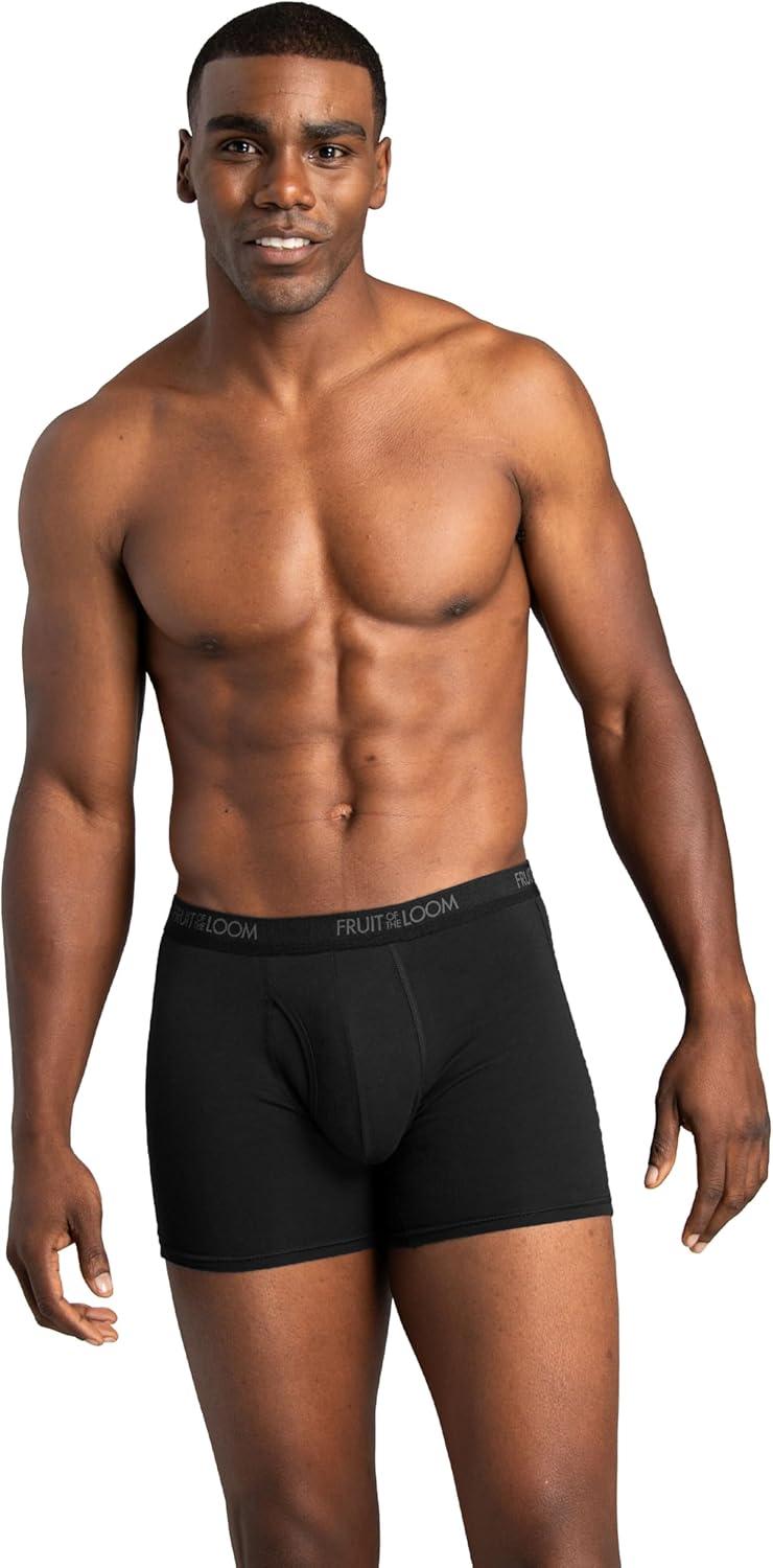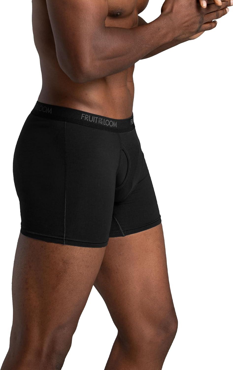 Fruit of the Loom Men's 4-Way Stretch Boxer Briefs | Lightweight & Moisture Wicking Underwear | Long, Regular Leg & Trunk(Regular Leg - Cotton Stretch - Black/Grey)