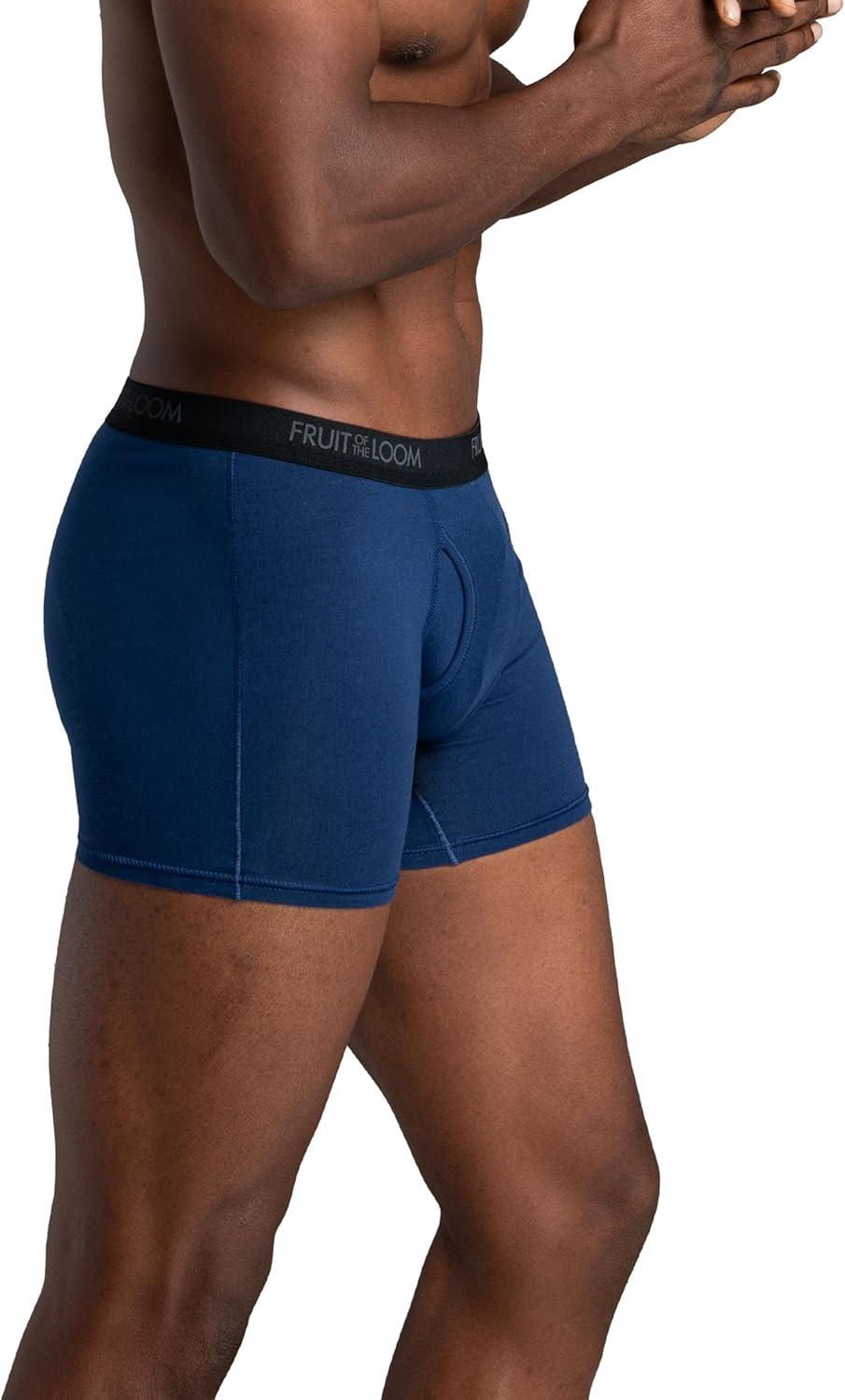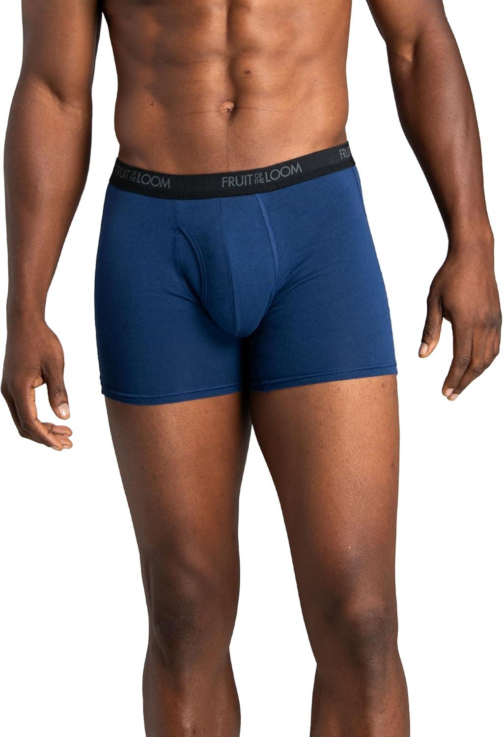 Fruit of the Loom Men's 4-Way Stretch Boxer Briefs | Lightweight & Moisture Wicking Underwear | Long, Regular Leg & Trunk(Regular Leg - Cotton Stretch - Colors May Vary)