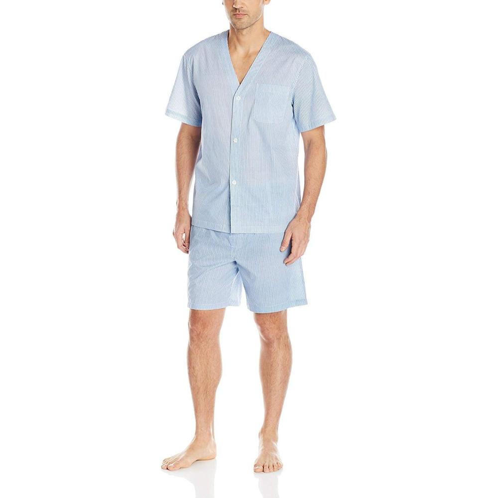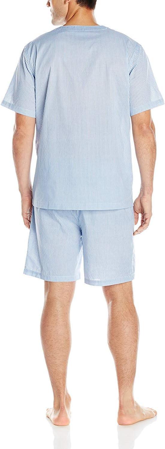 Fruit of the Loom Men’s Broadcloth Short Sleeve Pajama Set(Royal Stripe)