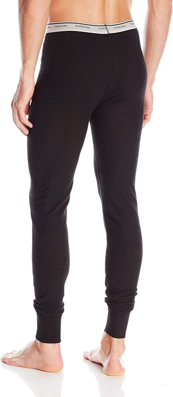 Fruit of the Loom Men’s Classic Midweight Waffle Thermal Underwear Bottoms (1 & 2 Packs)(Black Soot (1-pack))