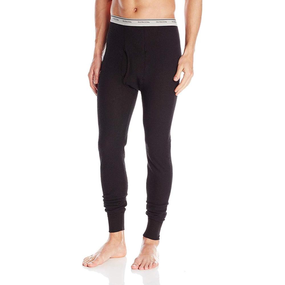 imageFruit of the Loom Mens Classic Midweight Waffle Thermal Underwear Bottoms 1 ampamp 2 PacksBlack Soot 1pack