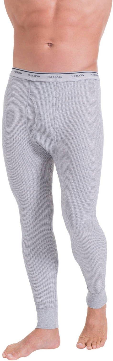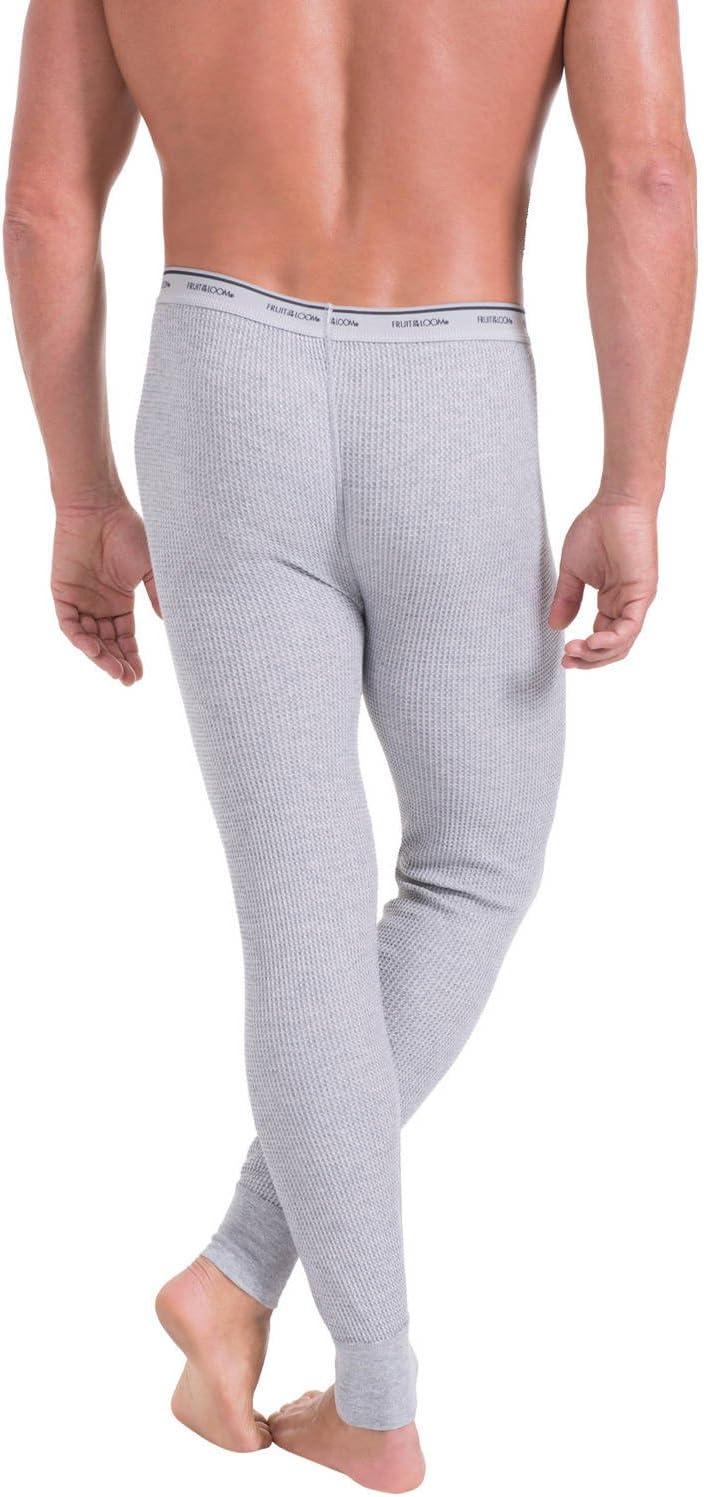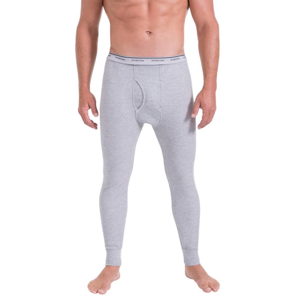 Fruit of the Loom Men's Classic Midweight Waffle Thermal Underwear Bottoms (1 & 2 Packs)(Light Grey Heather (1-pack))