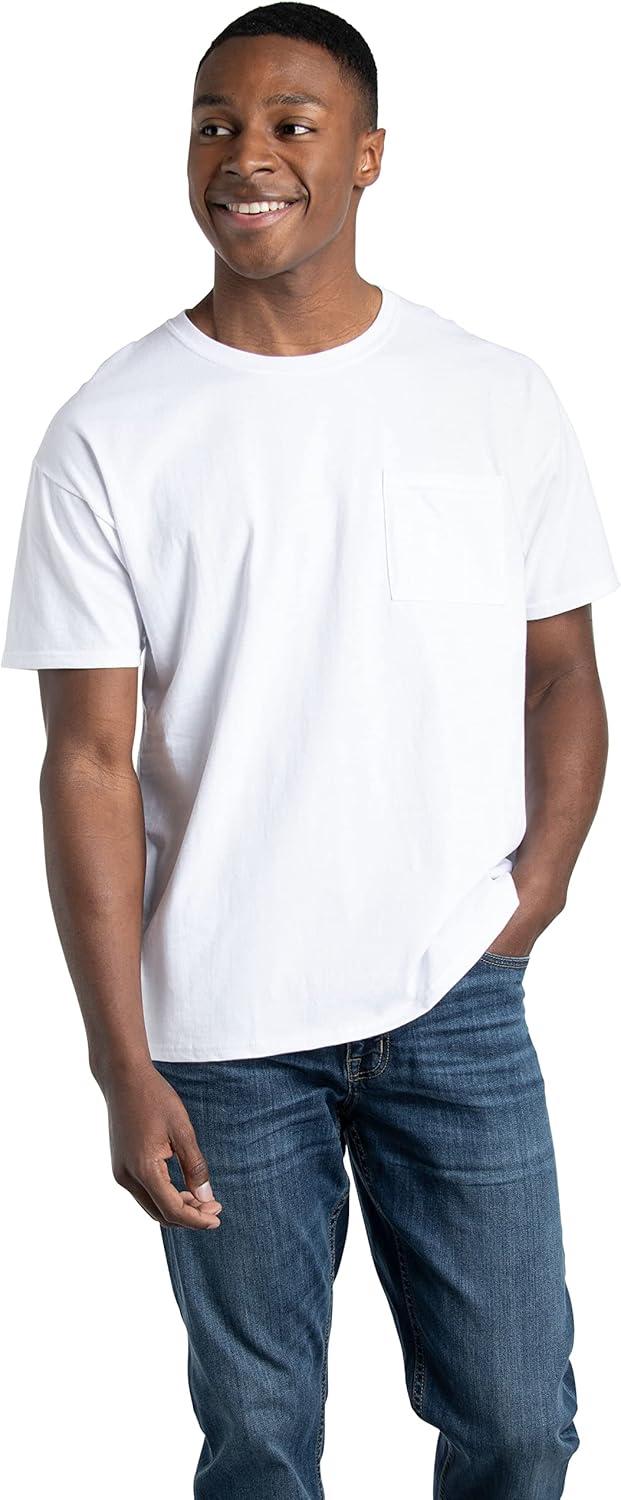 Fruit of the Loom Men’s Eversoft Cotton Short Sleeve Pocket T-Shirts, Breathable, 2-Pack(Colors May Vary – 6 Pack)