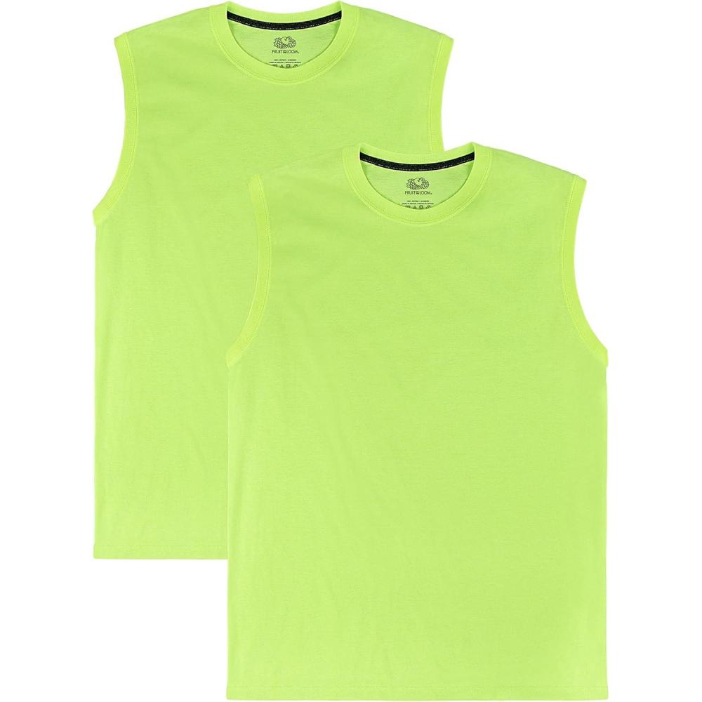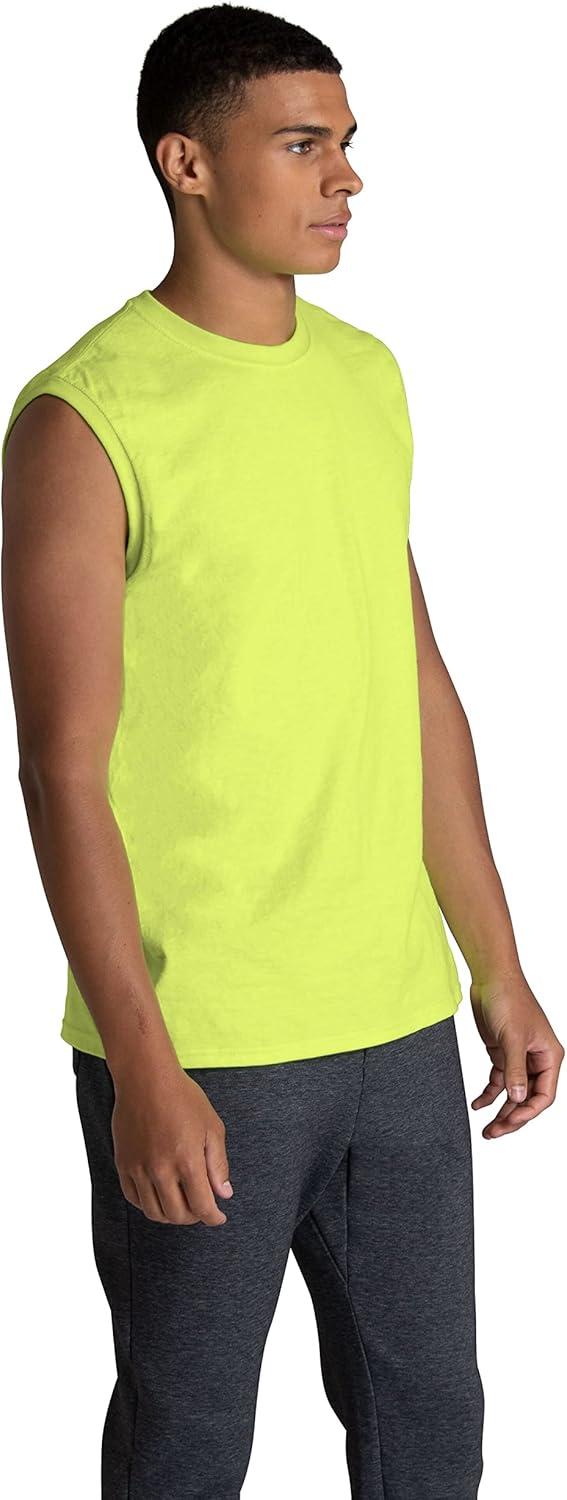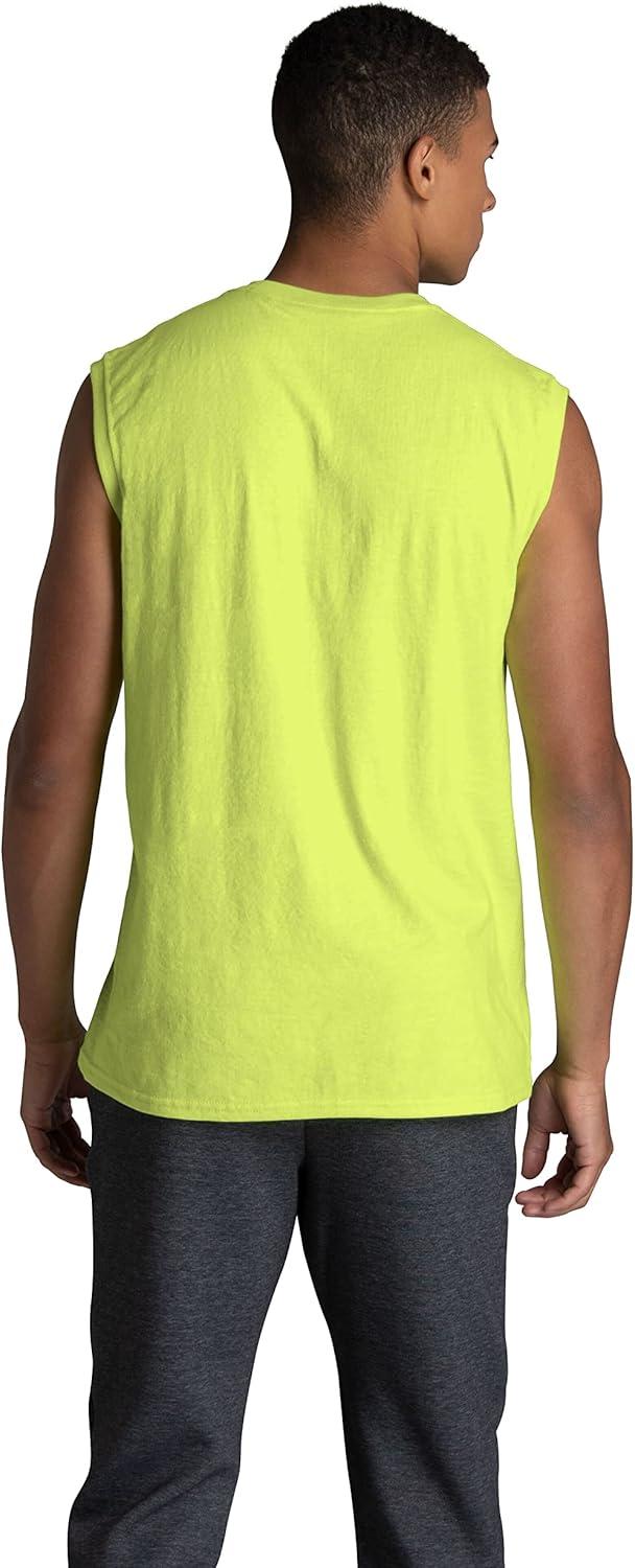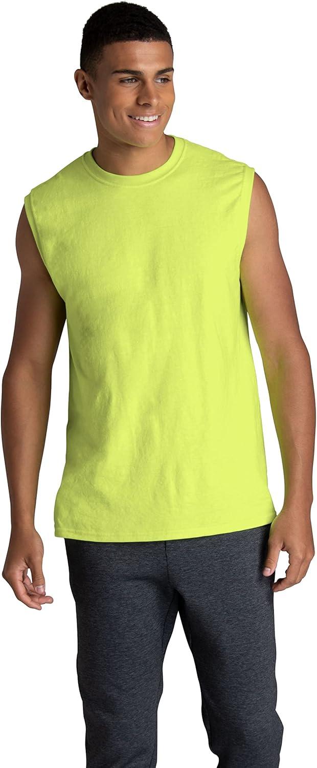 Fruit of the Loom Men's EverSoft Cotton Sleeveless Moisture Wicking T-Shirts with Odor Control(Muscle - 2 Pack - Safety Green)