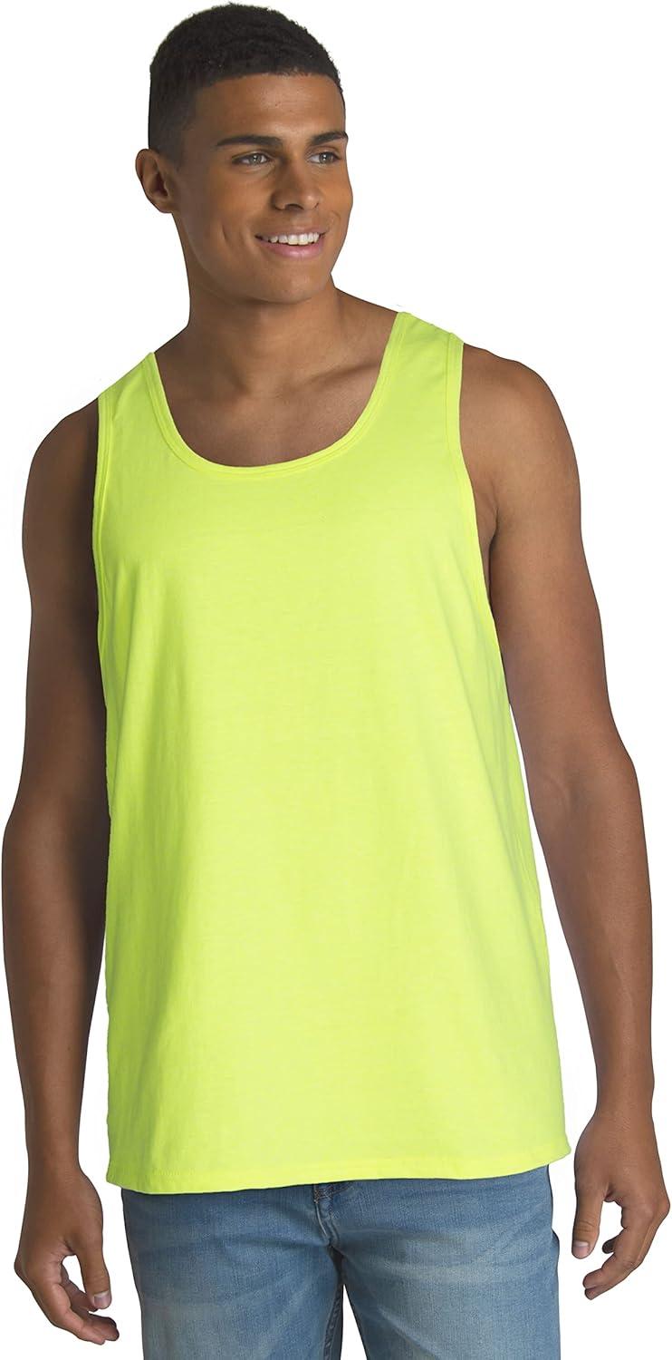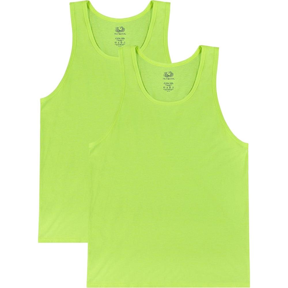 Fruit of the Loom Men's EverSoft Cotton Sleeveless Moisture Wicking T-Shirts with Odor Control(Tank - 2 Pack - Safety Green)