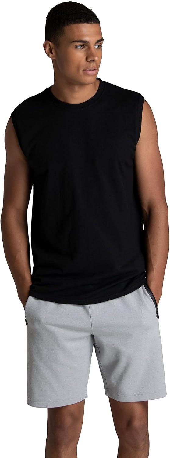 Fruit of the Loom Men’s Eversoft Cotton Sleeveless T Shirts, Breathable & Moisture Wicking with Odor Control, Sizes S-4x(Muscle – 2 Pack – Black Heather)