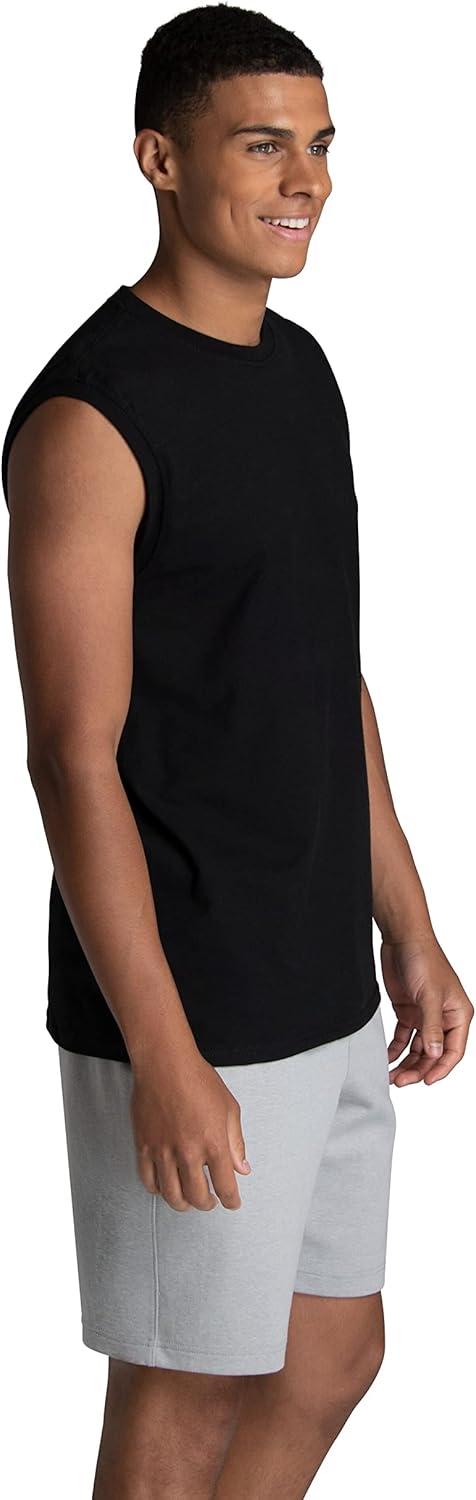 Fruit of the Loom Men’s Eversoft Cotton Sleeveless T Shirts, Breathable & Moisture Wicking with Odor Control, Sizes S-4x(Muscle – 2 Pack – Black)