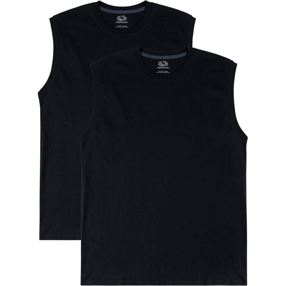 Fruit of the Loom Men's Eversoft Cotton Sleeveless T Shirts, Breathable & Moisture Wicking with Odor Control, Sizes S-4x(Muscle - 2 Pack - Black)