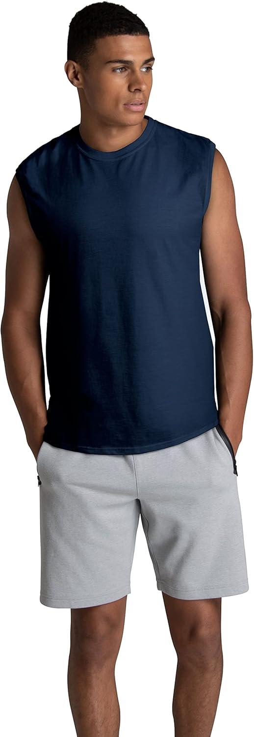 Fruit of the Loom Men’s Eversoft Cotton Sleeveless T Shirts, Breathable & Moisture Wicking with Odor Control, Sizes S-4x(Muscle – 2 Pack – Navy)