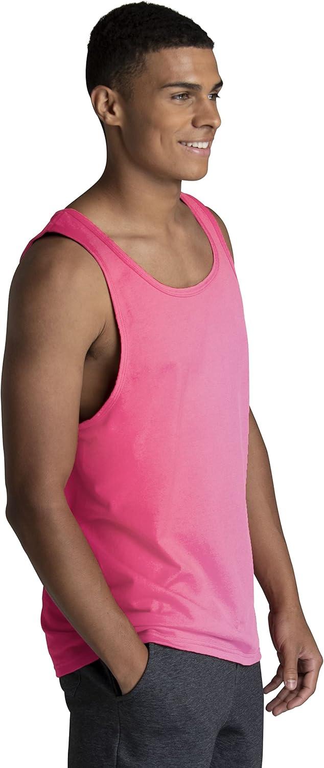 Fruit of the Loom Men's Eversoft Cotton Sleeveless T Shirts, Breathable & Moisture Wicking with Odor Control, Sizes S-4x(Tank - 2 Pack - Neon Pink)