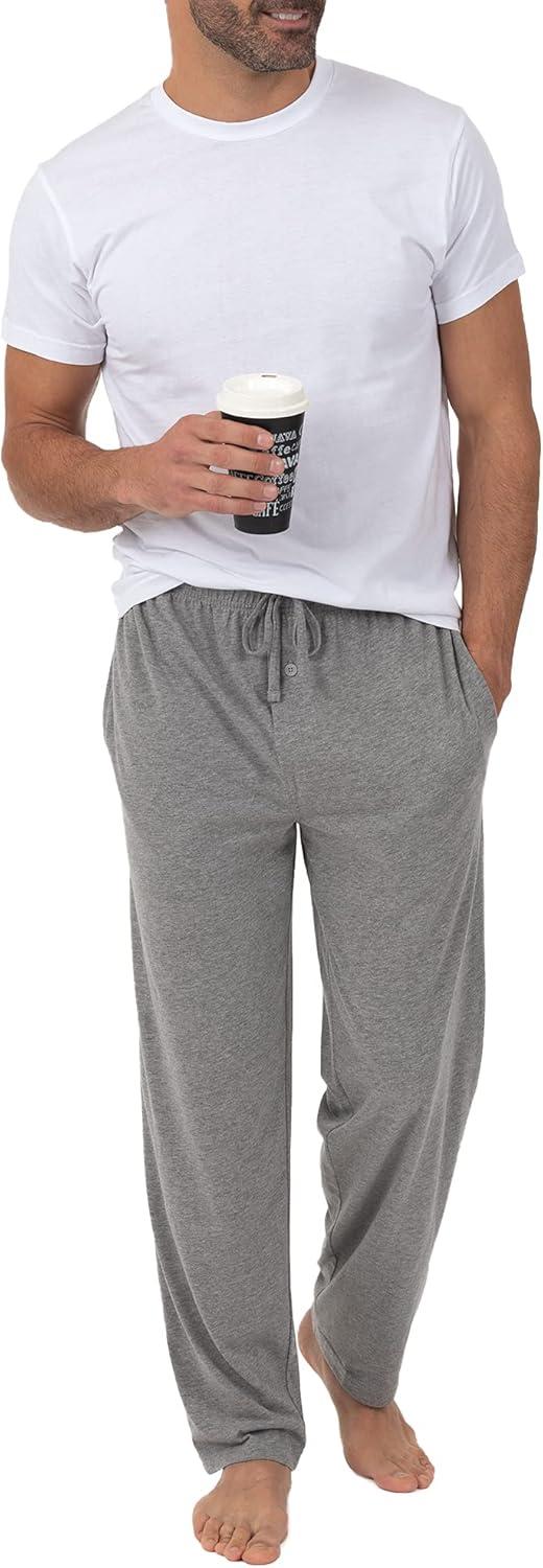 Fruit of the Loom Men’s Extended Sizes Jersey Knit Sleep Pajama Lounge Pant (1 & 2 Packs)(Black/Light Grey)