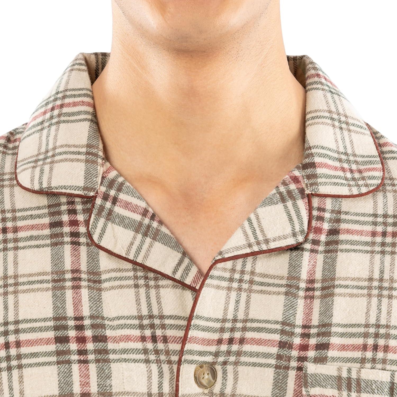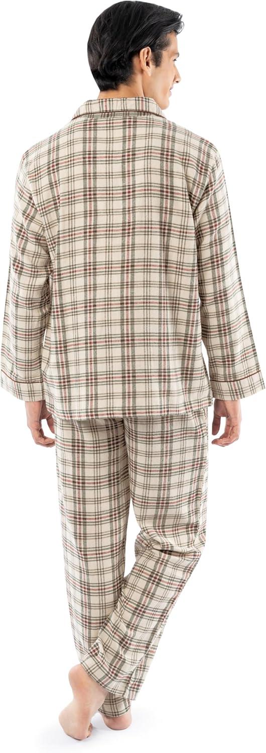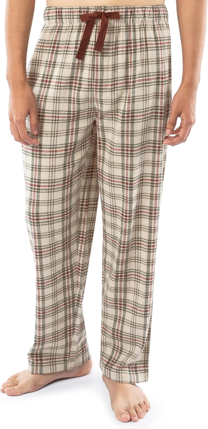 Fruit of the Loom Men’s Flannel Pajama Sleep Set(Beige/Khaki Plaid)