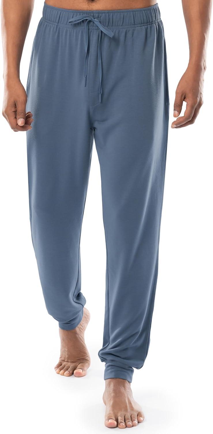Fruit of the Loom mens French Terry Top and Jogger Sleep Pajama Set(Heather Grey/Blue)