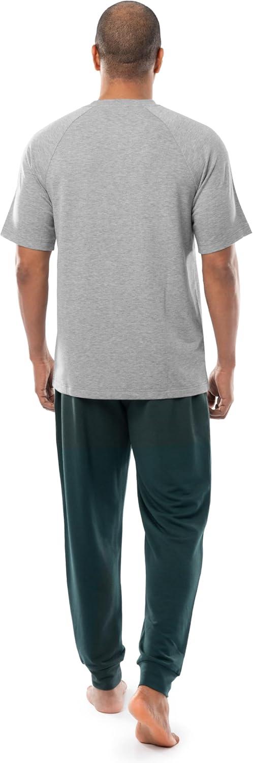 Fruit of the Loom Men’s French Terry Top and Jogger Sleep Pajama Set(Heather Grey/Green)