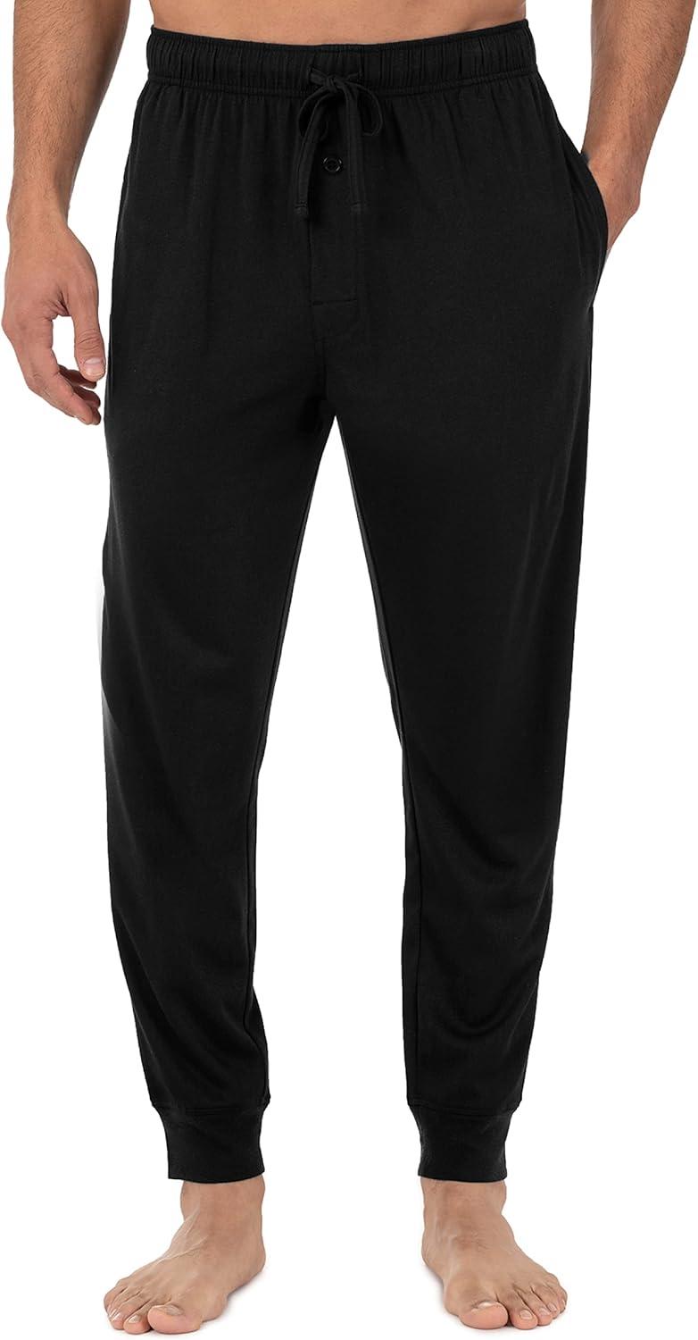 Fruit of the Loom Men's Jersey Knit Jogger Sleep Pant (1 and 2 Packs)(Black/Grey Heather)