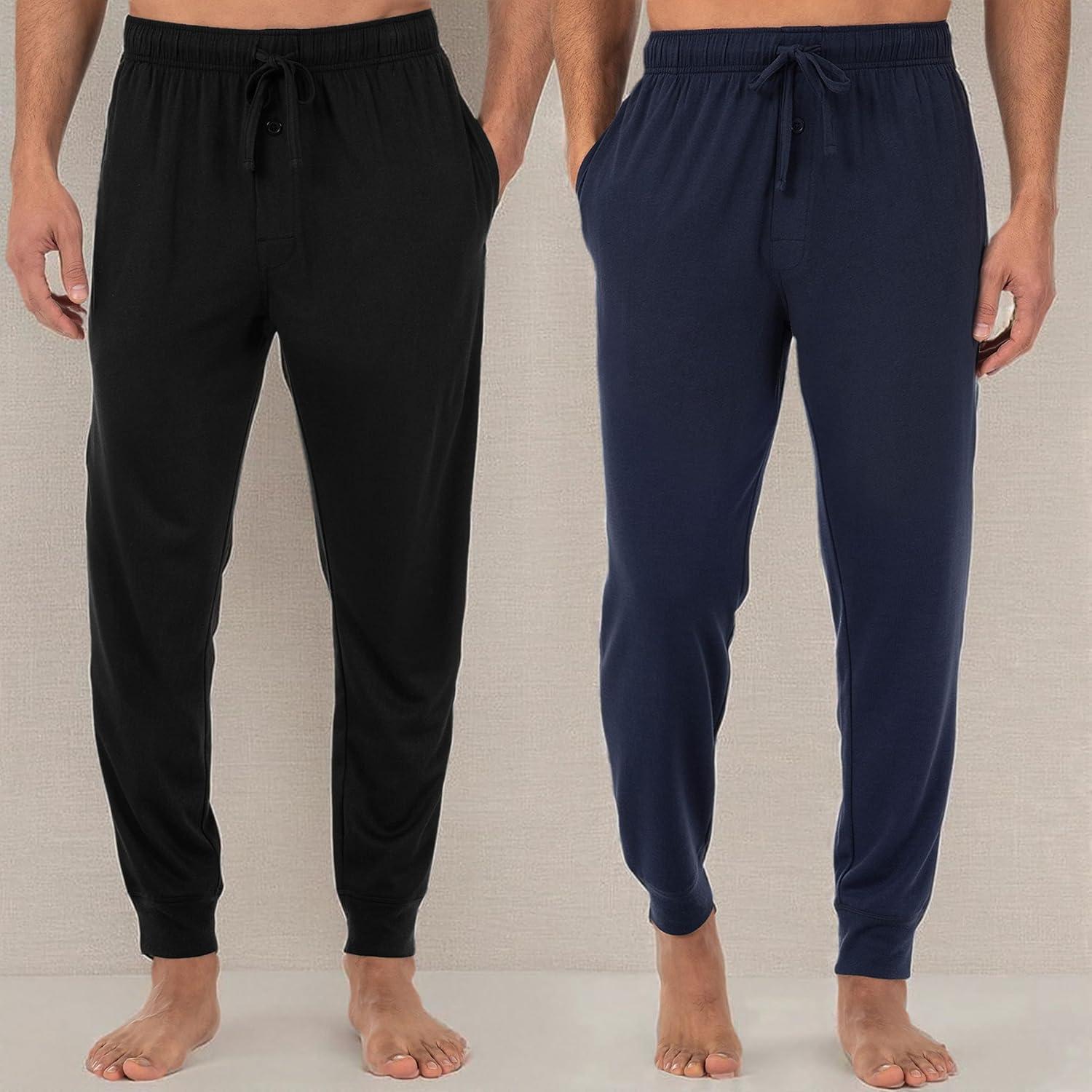 Fruit of the Loom Men's Jersey Knit Jogger Sleep Pant (1 and 2 Packs)(Black/Navy)