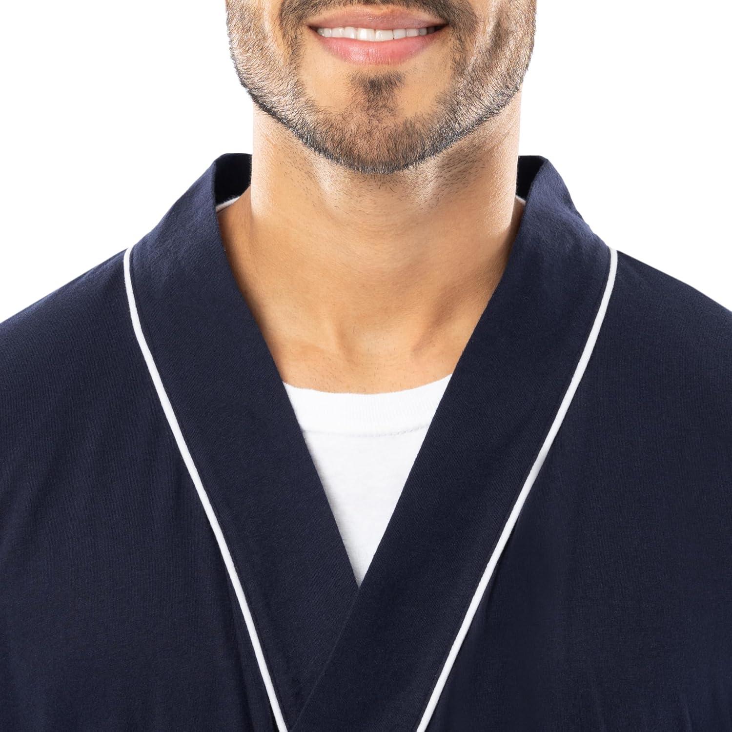 Fruit of the Loom Mens Jersey Knit Kimono Robe(Navy)