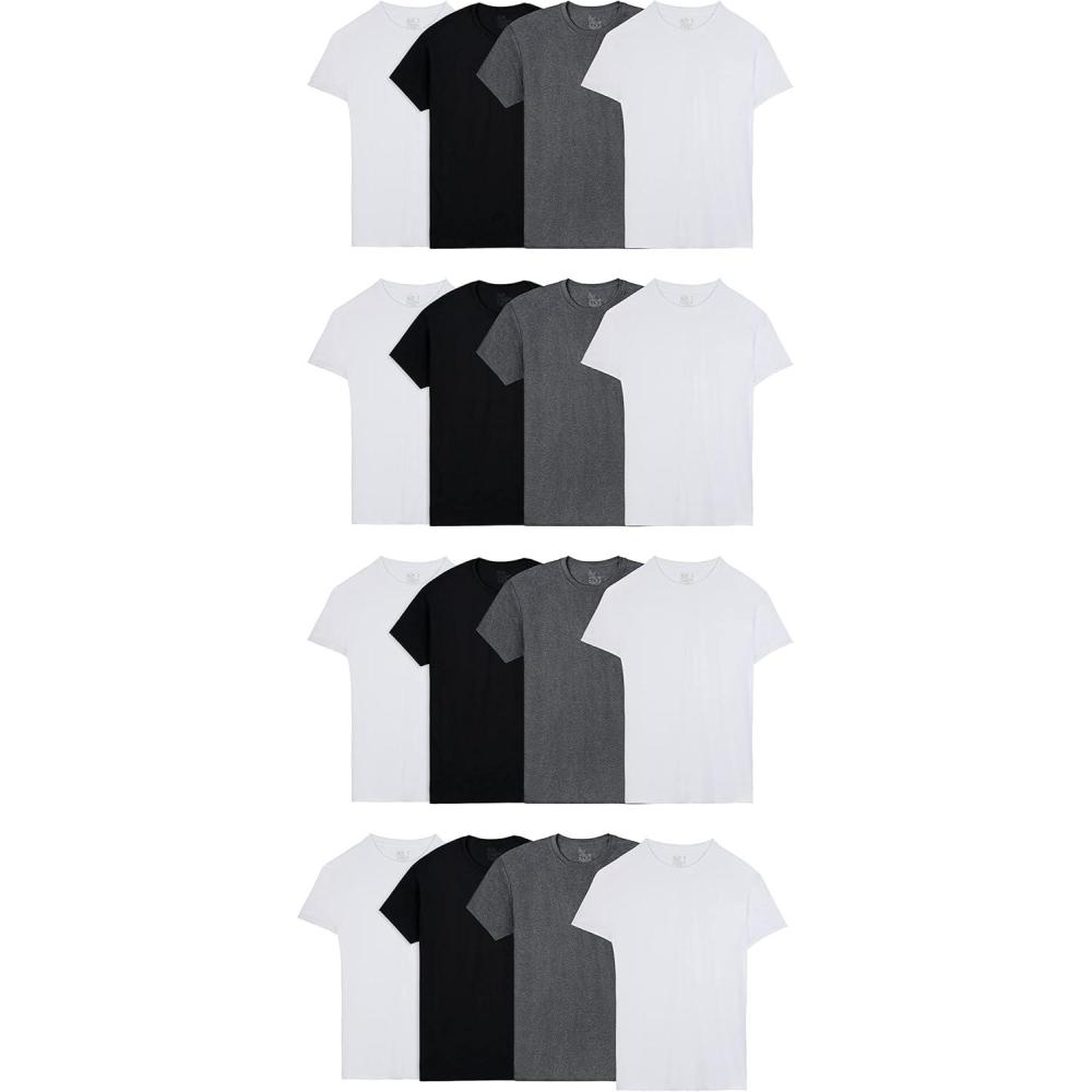 Fruit of the Loom Men’s Lightweight Active Cotton Blend Undershirts, Crew – 16 Pack – Black/Grey/White, Small