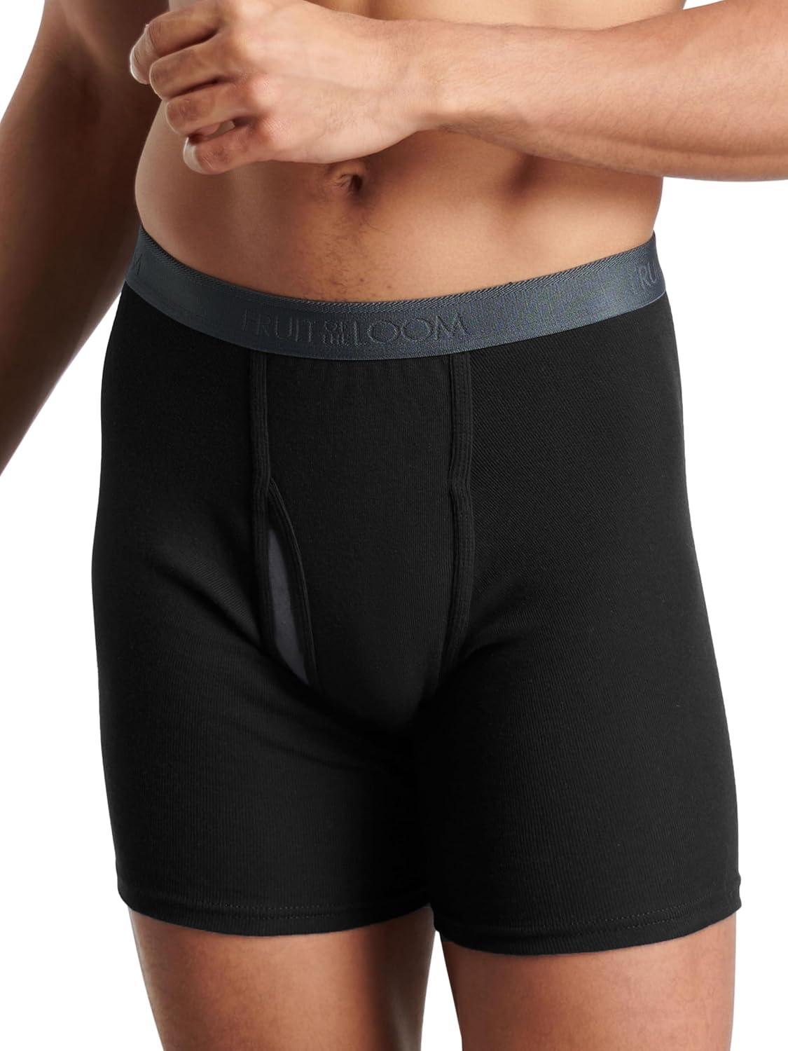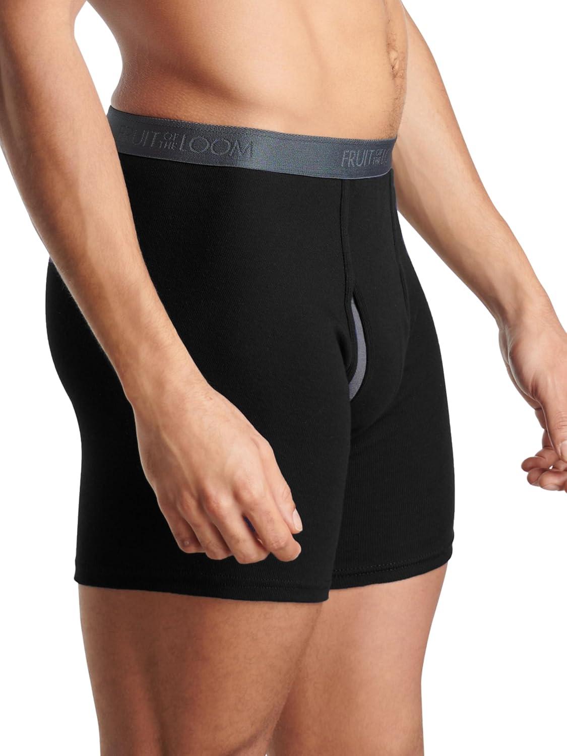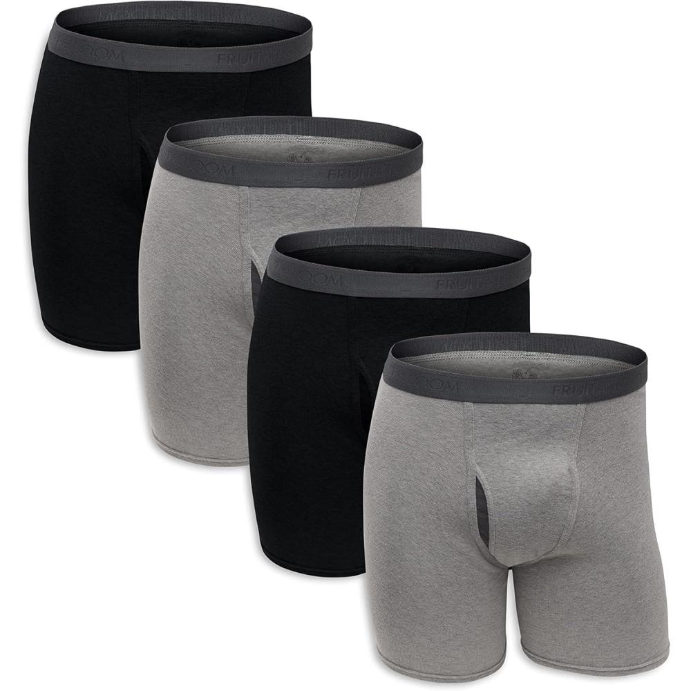 Fruit of the Loom Men’s Premium Tag-Free Cotton Underwear (Regular & Big Man)(Boxer Brief – 4 Pack – Black/Gray)