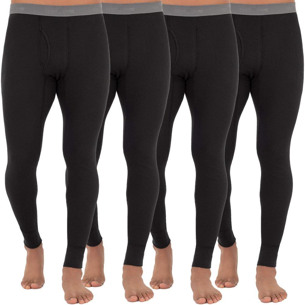 Fruit of the Loom mens Recycled Premium Waffle Thermal Underwear Long Johns Bottom(Black 4 Pack)