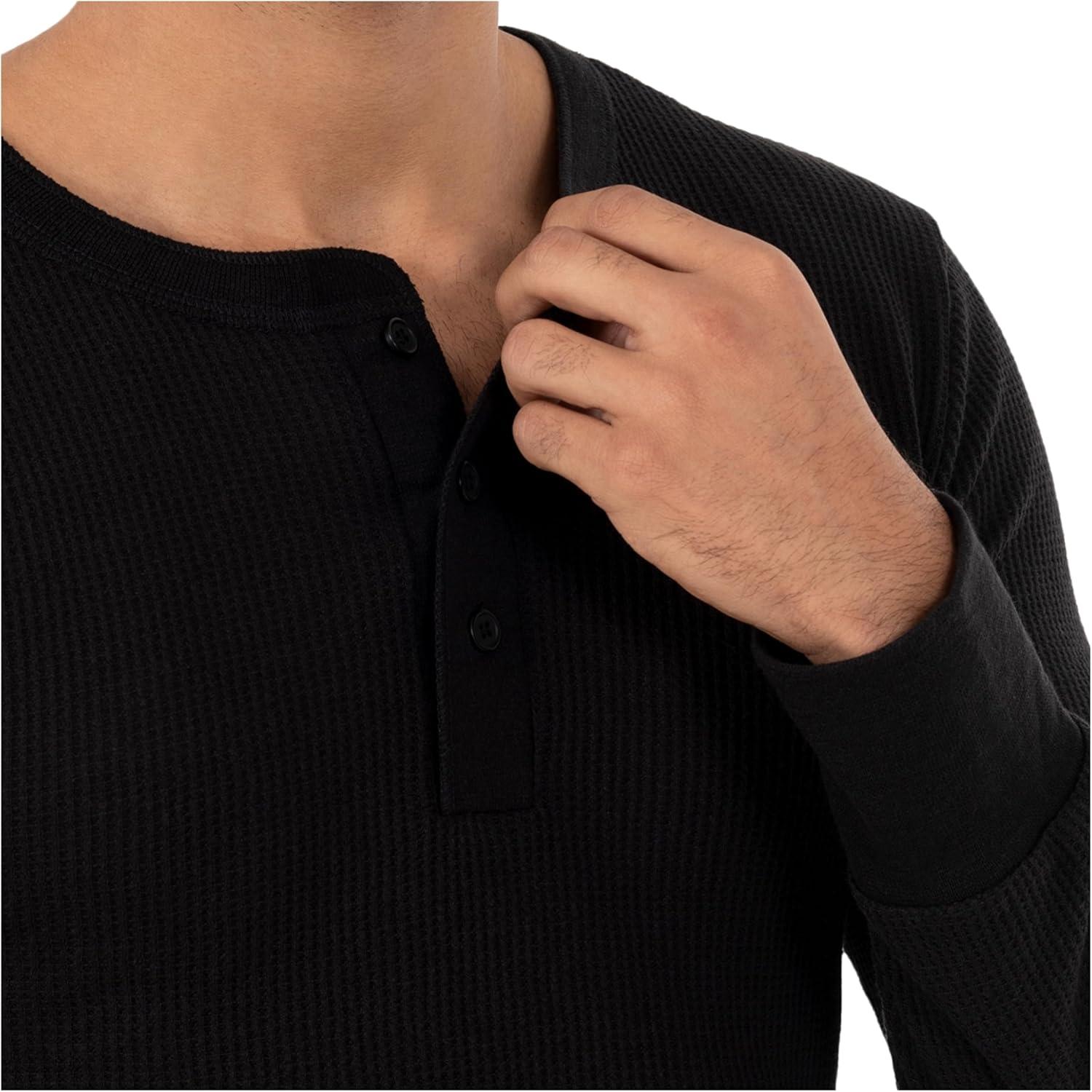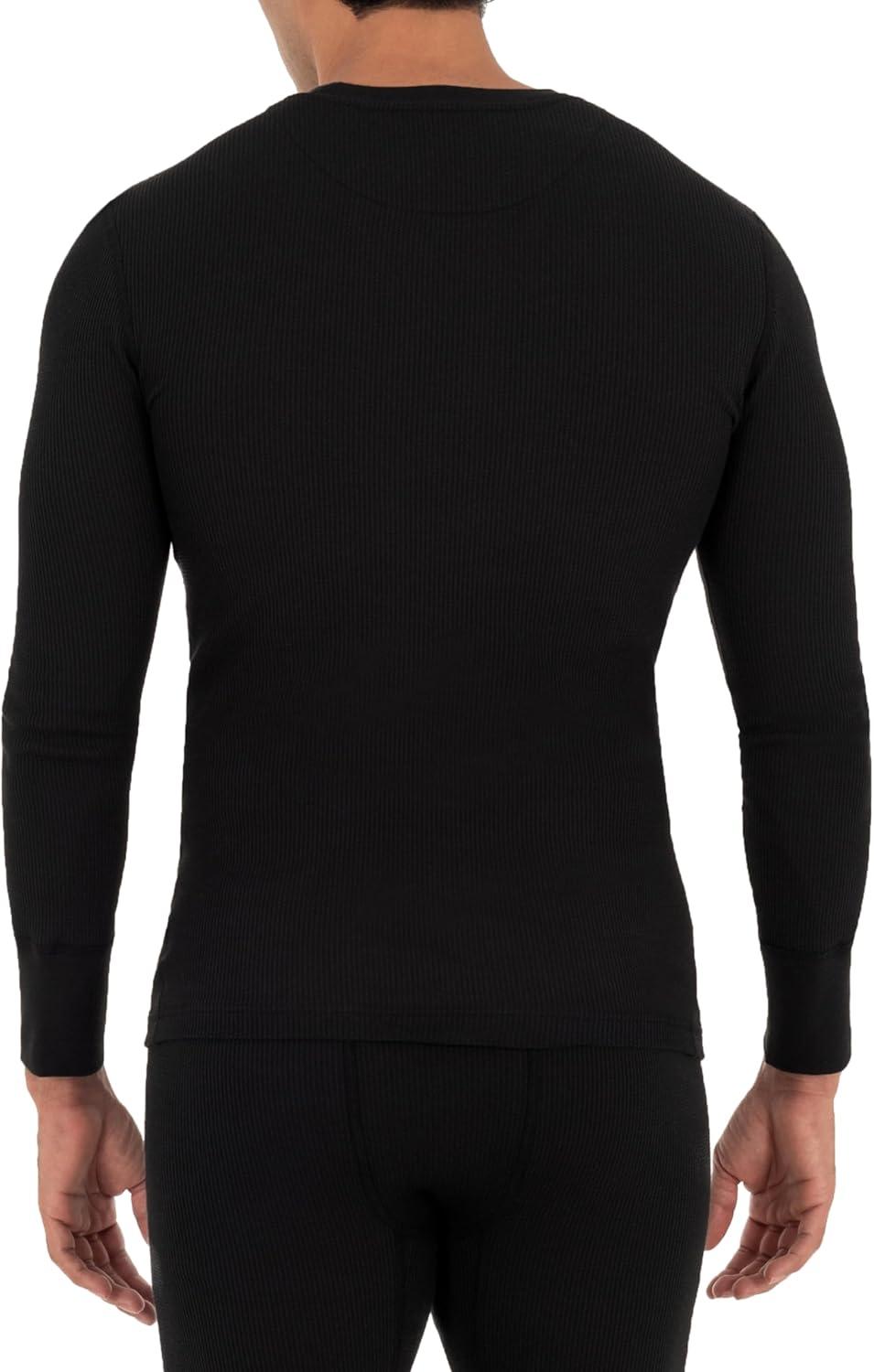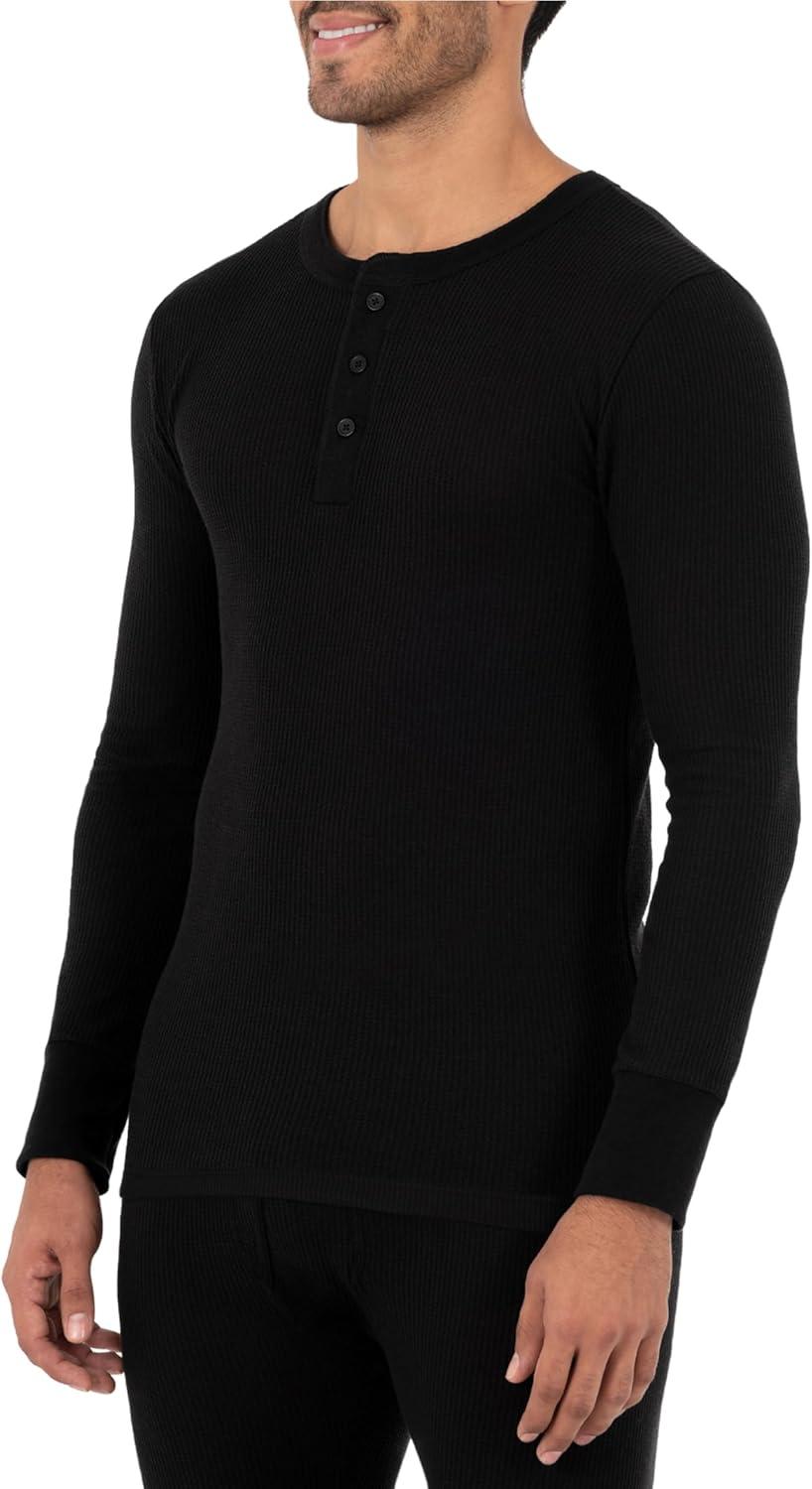 Fruit of the Loom mens Recycled Waffle Thermal Underwear Henley Top(Black)