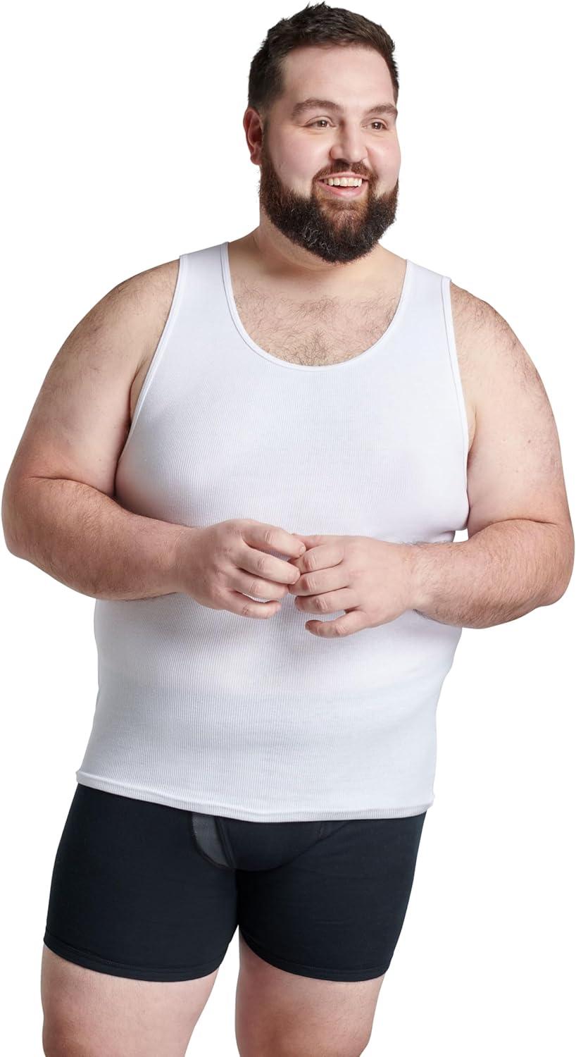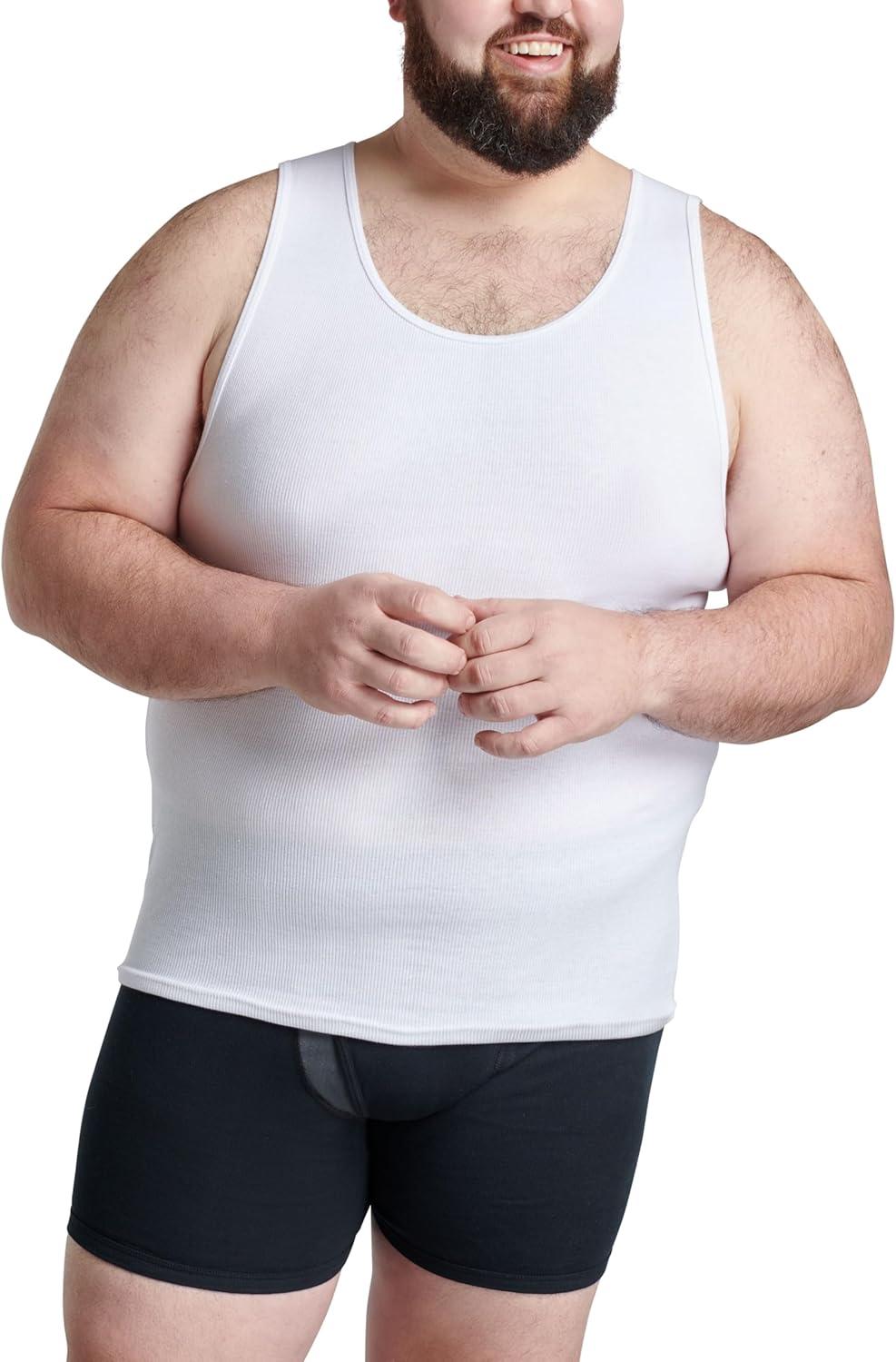 Fruit of the Loom Men’s Sleeveless Tag Free Moisture Wicking Tank A-Shirt(Big Man – 6 Pack – White)