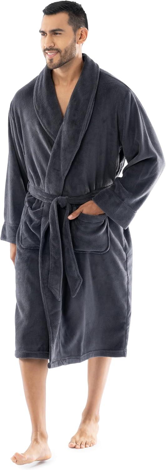 Envelop yourself in the unmatched comfort of the Fruit of the Loom Men's Solid Plush Fleece Robe. Made from ultra-soft poly-fleece, this robe boasts a luxurious shawl collar and spacious front pockets. The adjustable belt tie guarantees a perfect fit, making it your go-to for ultimate relaxation at home. Whether you're treating yourself or someone special, this robe is the cozy essential you'll rely on for warmth and comfort.