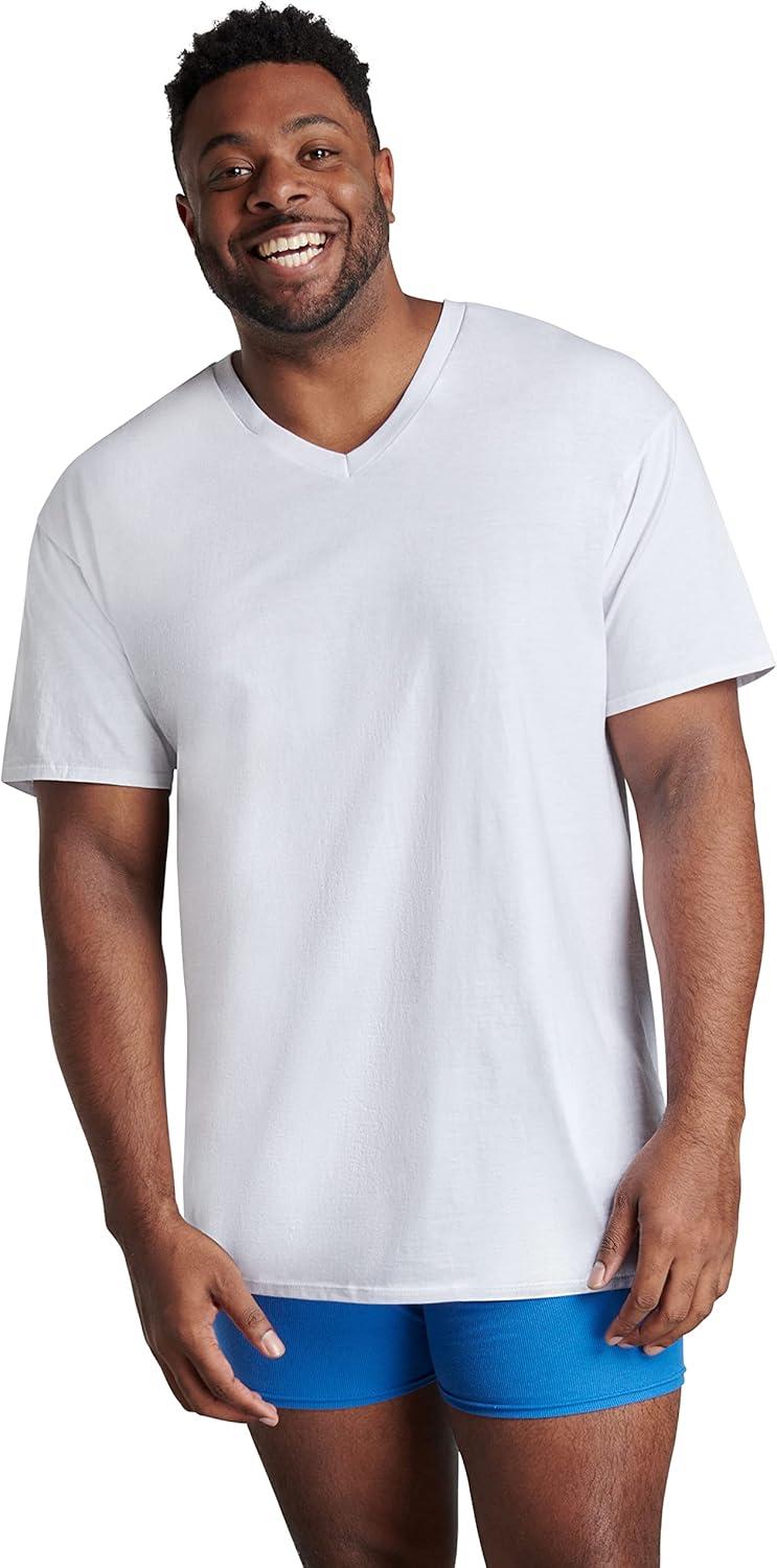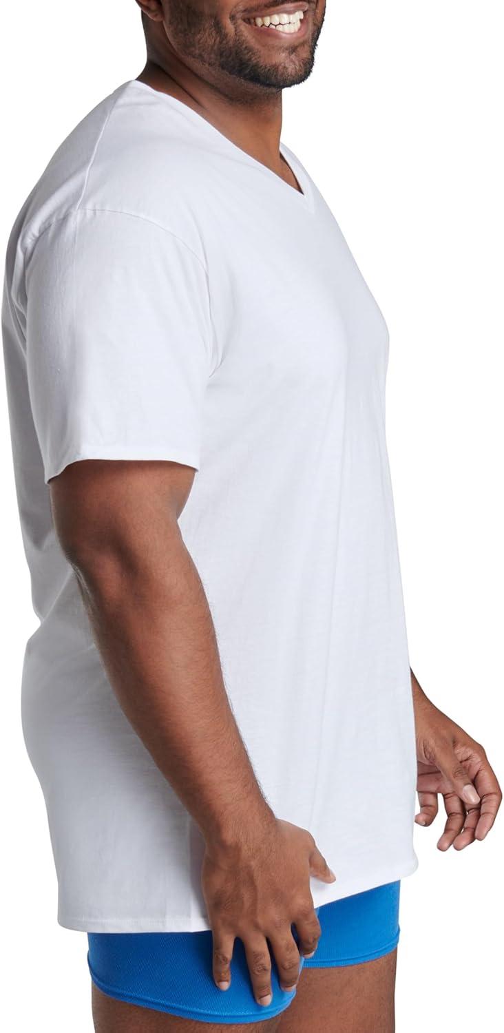 Fruit of the Loom Men's Tag-Free Cotton Undershirts(Tall Man - V-neck - 6 Pack White)