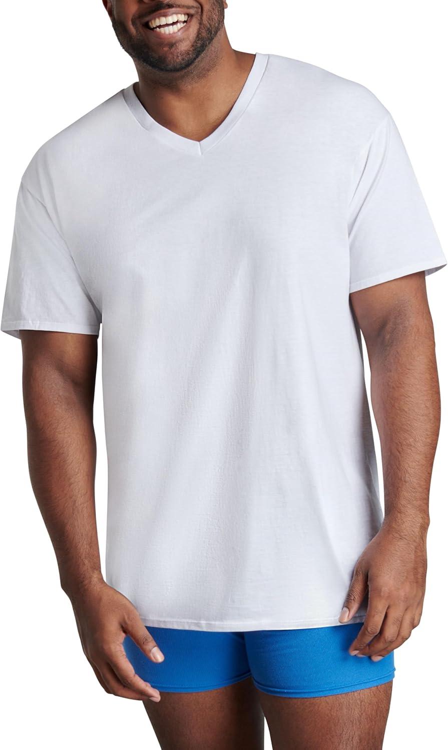 Fruit of the Loom Men’s Tag-Free Cotton Undershirts(Tall Man – V-neck – 6 Pack White)