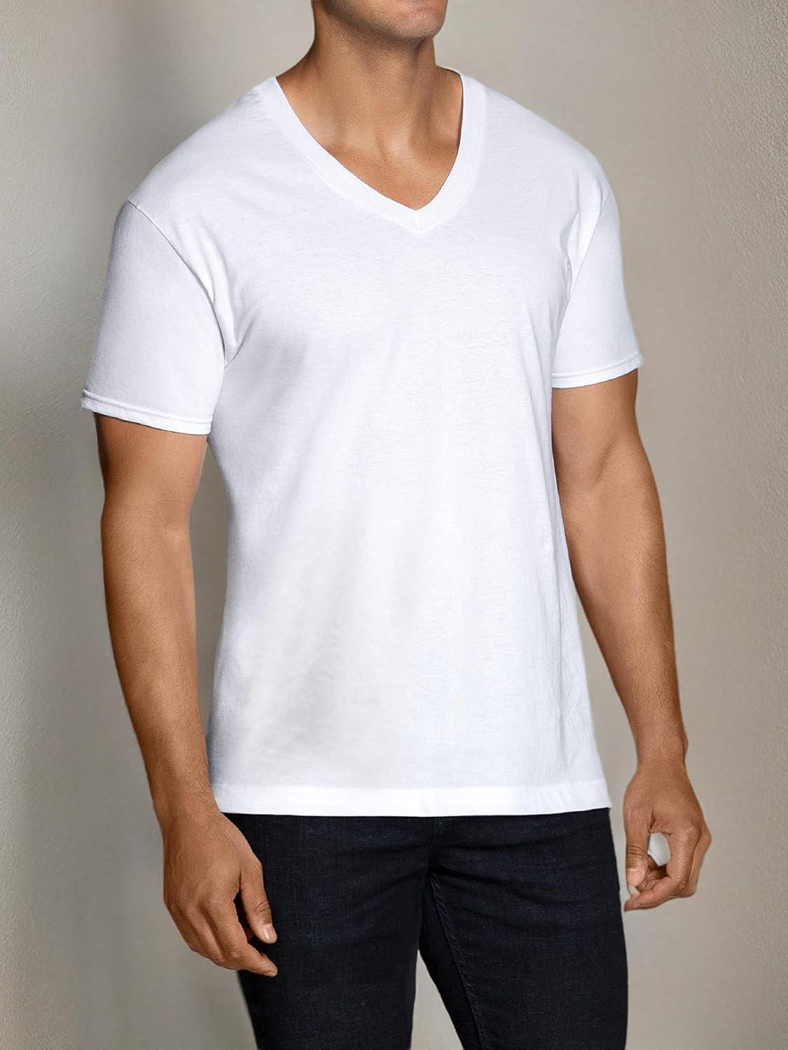 Fruit of the Loom Men's V-Neck Undershirts, Moisture Wicking & Tag Free, Also Available in Tall Sizes(White - 72 Pack)
