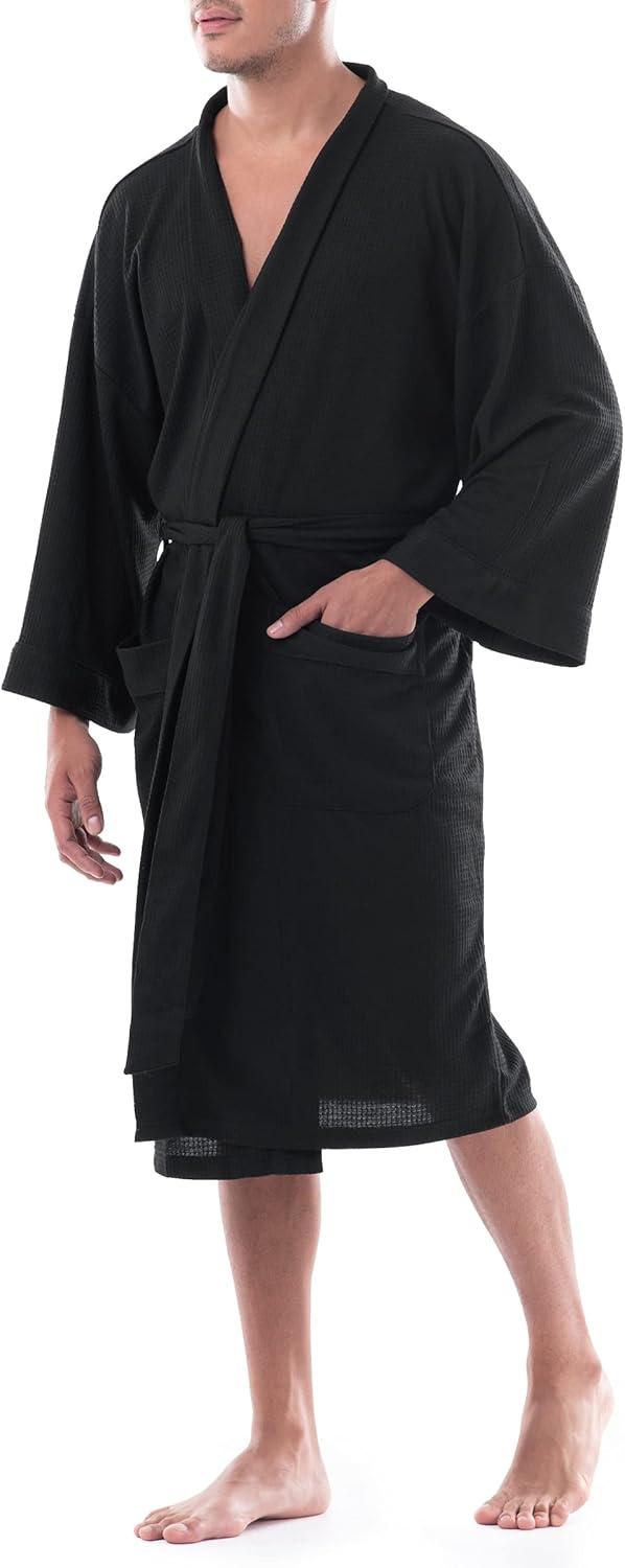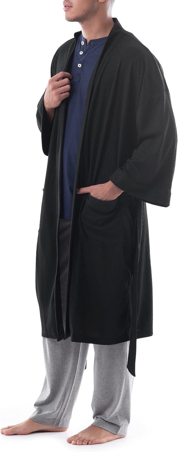 Fruit of the Loom Men’s Waffle Kimono Robe(Black)