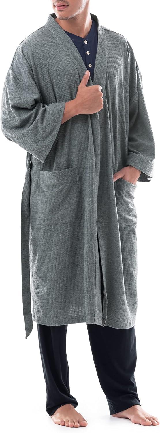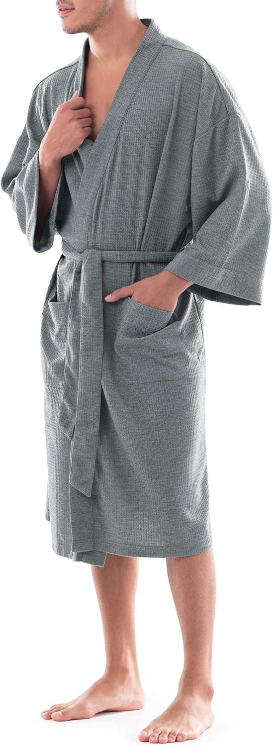 Fruit of the Loom Men’s Waffle Kimono Robe(Grey Heather)